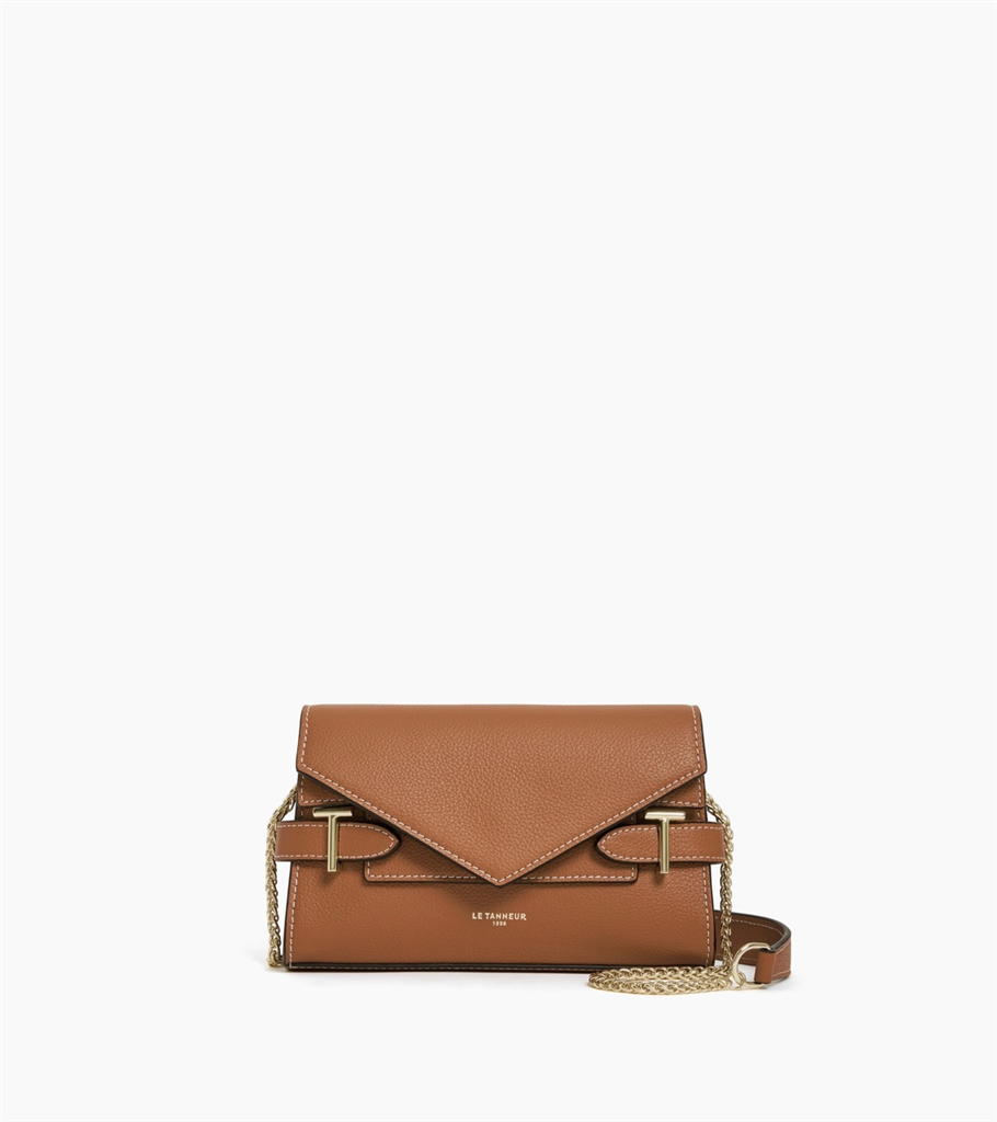 pochette double rabat en cuir graine
