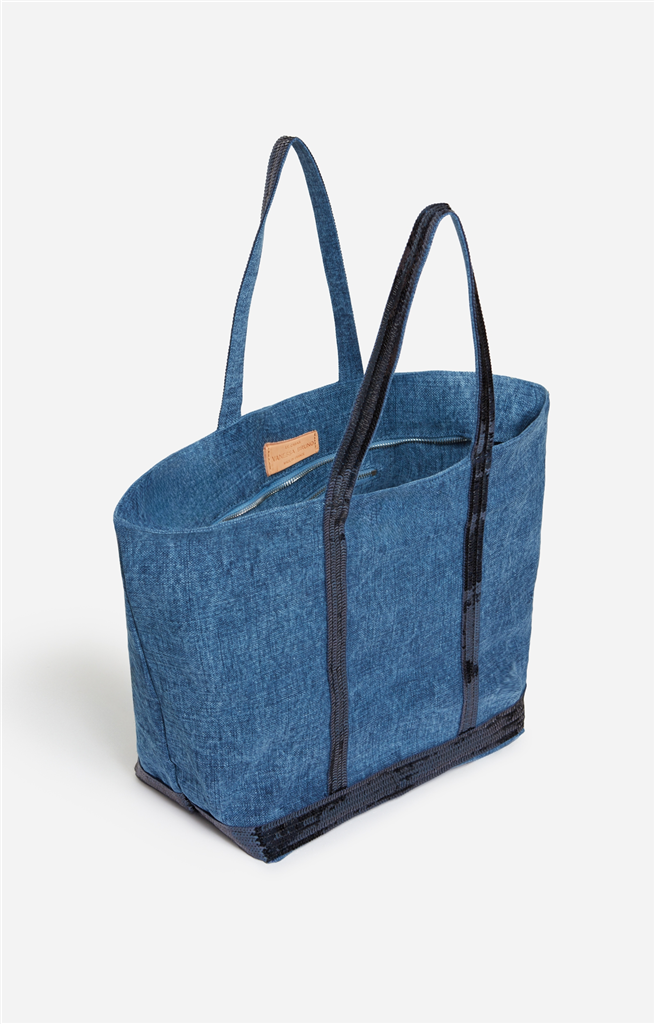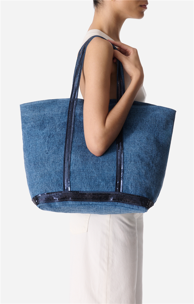 Le Cabas iconique de la maison Vanessa Bruno, est présenté dans sa version L en lin et sequins. C’est le modèle le plus polyvalent de la gamme, conçu pour transporter l’essentiel, ainsi qu’un ordinateur portable et/ou un cahier grand format. Étiquette intérieur en cuir “Le Cabas Vanessa Bruno Made in France”. – Matière : 100% Lin (principale), 70% Polyester et 30% Acrylique (secondaire) – Origine : France – Forme : Cabas – Taille : L – Porté : Main ou épaule – Fermeture : Zippée – Anses : Oui – Bandoulière : Non – Dimensions : L 34 cm x l 18 cm x H 49 cm, Hauteur anses 22 cm – Référence : 0PVE31-V40409 – Entretien : Ne pas laver, ni sécher en machine. Ne pas repasser. Ne pas effectuer de blanchiment. Pas d’entretien professionnel à l’eau et à se