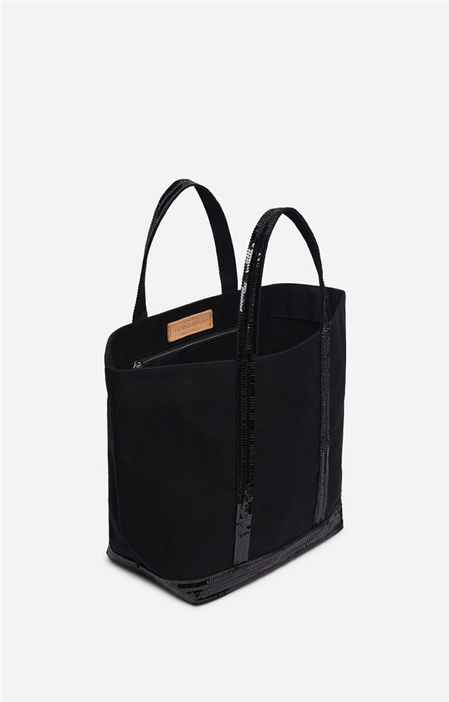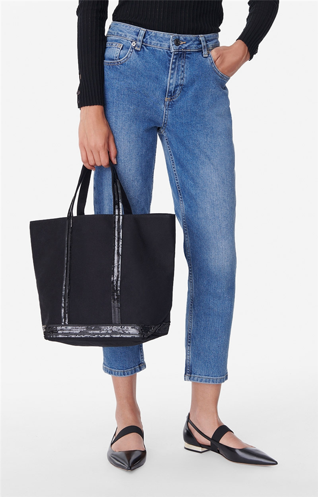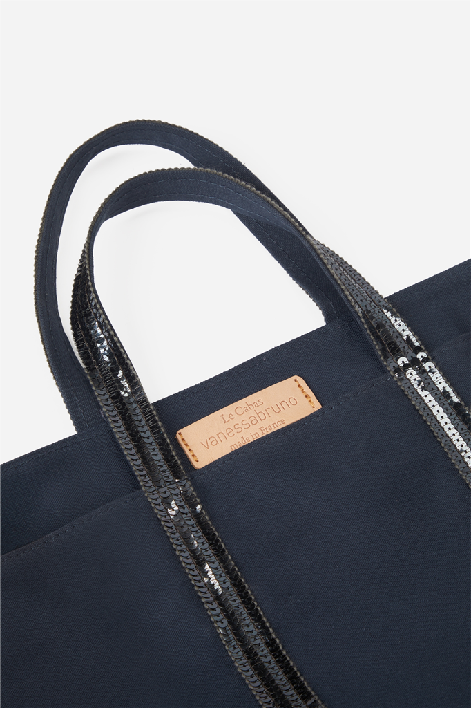 Confectionné à Paris dans les ateliers de la maison Vanessa Bruno, l’emblème Cabas en toile est présenté dans sa version M. Cette taille s’adresse à toutes celles qui aiment emporter un peu plus que l’essentiel. Étiquette intérieur en cuir “Le Cabas Vanessa Bruno Made in France”. – Matière : 100% Coton (principale), 70% Polyester et 30% Acrylique (secondaire) – Origine : France – Forme : Cabas – Taille : M – Porté : Main ou épaule – Fermeture : Non – Anses : Oui – Bandoulière : Non – Dimensions : L 29 cm x l 15 cm x H 42 cm, Hauteur anses 14 cm – Référence : 0PVE01-V40413 – Entretien : Ne pas laver, ni sécher en machine. Ne pas repasser. Ne pas effectuer de blanchiment. Pas d’entretien professionnel à l’eau et à sec. – Notre conseil taille : Ne peut accueillir un ordinateur portable ou un cahier grand format, il ne fait pas office de sac de classe ou de bureau. Pour cet usage privilégiez la taille L.