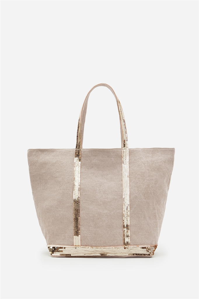 Modèle incontournable de la maison Vanessa Bruno, le Cabas est présenté dans sa version M en lin et sequins. Cette taille s’adresse à toutes celles qui aiment emporter un peu plus que l’essentiel. Étiquette intérieur en cuir “Le Cabas Vanessa Bruno Made in France”. – Matière : 100% Lin (principale), 70% Polyester et 30% Acrylique (secondaire) – Origine : France – Forme : Cabas – Taille : M – Porté : Main ou épaule – Fermeture : Zippée – Anses : Oui – Bandoulière : Non – Dimensions : L 29 cm x l 15 cm x H 42 cm, Hauteur anses 22 cm – Référence : 0PVE31-V40378 – Entretien : Ne pas laver, ni sécher en machine. Ne pas repasser. Ne pas effectuer de blanchiment. Pas d’entretien professionnel à l’eau et à sec. – Notre conseil taille : Ne peut accueillir un ordinateur portable ou un cahier grand format, il ne fait pas office de sac de classe ou de bureau. Pour cet usage privilégiez la taille L.