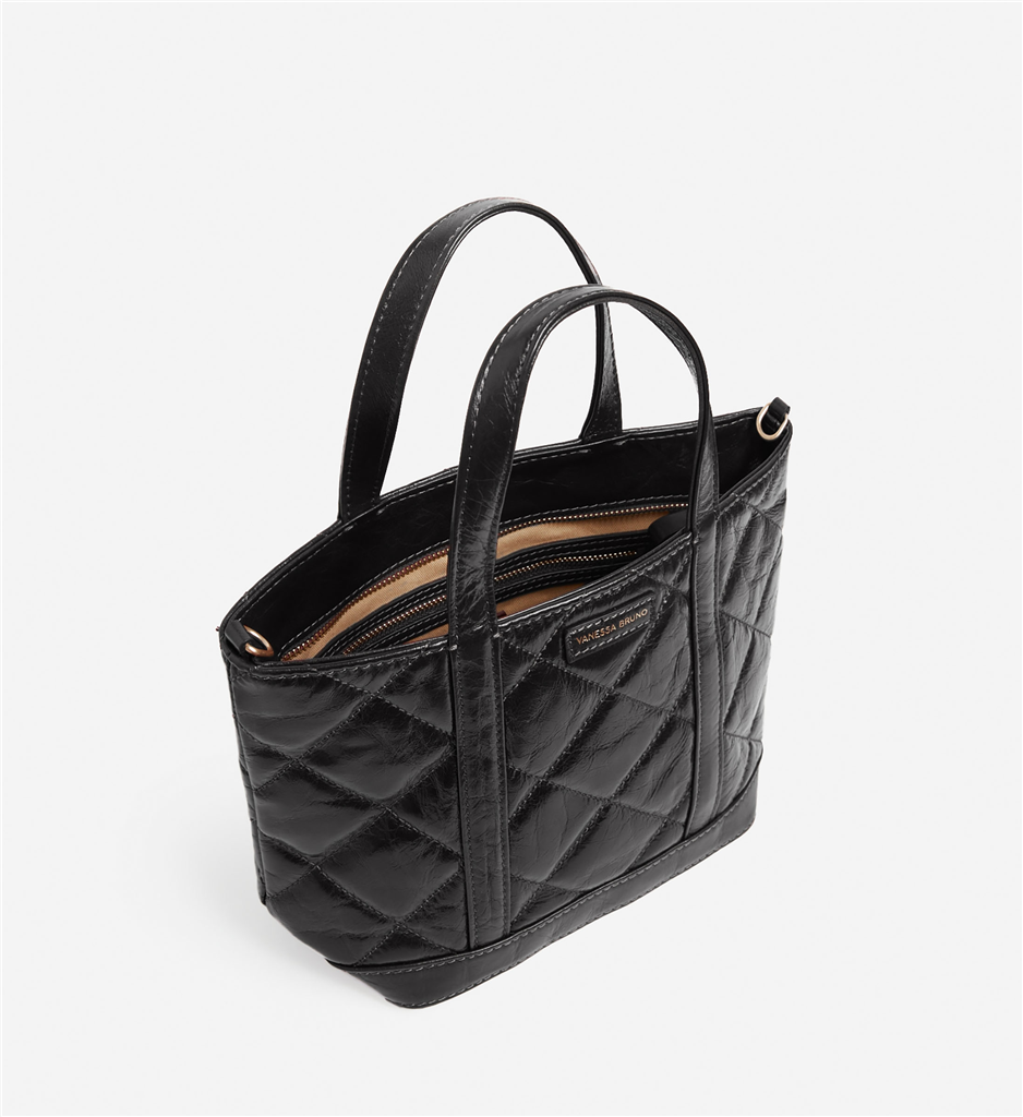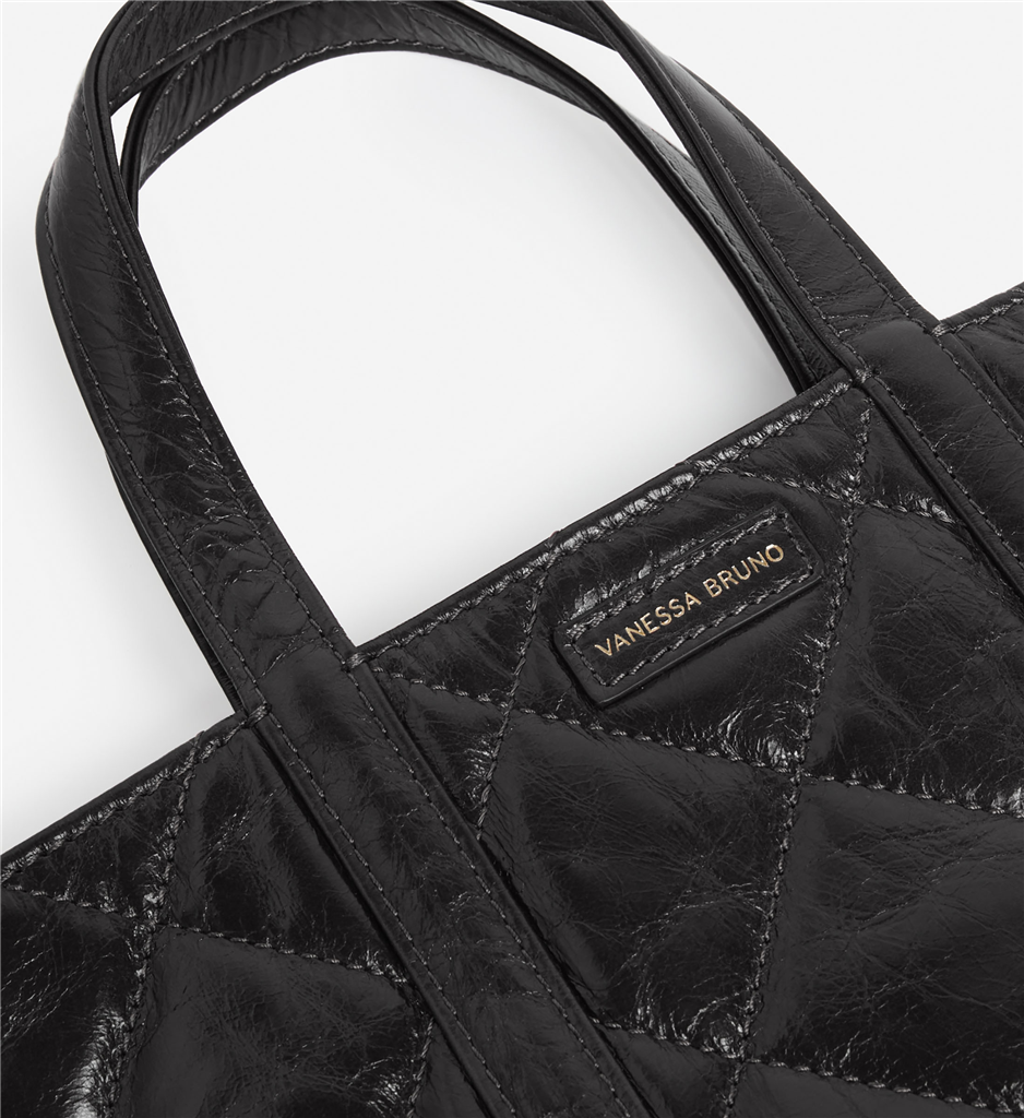 Pour cette nouvelle saison, la maison Vanessa Bruno introduit une nouvelle version, la taille S en cuir de vachette matelassé. Petit, pratique et élégant, il vous accompagnera dans tous vos déplacements. – Matière : 100% Cuir de Vachette (principale), Doublure intérieur 100% Coton – Origine : Italie – Forme : Cabas – Taille : S – Porté : Main, épaule ou croisé – Fermeture : Zippée – Anses : Oui – Bandoulière : Ajustable et amovible – Dimensions : L 22 cm x l 12 cm x H 34,5 cm, Hauteur anses 12 cm – Référence : 2EVD84-V40435 – Entretien : Avant son utilisation protéger votre sac en l’imperméabilisant et renouveler l’opération tous les 6 mois. Vaporiser le spray imperméabilisant à 30 cm minimum du sac. Il est préférable d’entretenir régulièrement avec un chiffon doux. En cas de poussière sur votre sac, dépoussiérer par un brossage doux et utiliser un rénovateur incolore pour raviver la couleur. Conserver le sac à l’abri de la pluie et de l’humidité. Lors de forte pluie ou de liquide renversé, tamponner avec un linge propre et laisser sécher à l’abri de toute source de chaleur. Après utilisation, il est recommandé de conserver votre sac en le rembourrant dans son pochon à l’abri de la lumière, de la chaleur et de l’humidité. En cas de taches, utiliser une crème pour les cuirs craquelés et frotter avec un chiffon doux et sec. Privilégier une crème de la même couleur ou légèrement plus claire que celle de votre sac. Pour décoincer une fermeture éclair, utiliser un peu de paraffine ou un pain de savon dur. Ne pas laver, ni sécher en machine. Ne pas repasser. Ne pas effectuer de blanchiment. Pas d’entretien professionnel à l’eau et à sec.