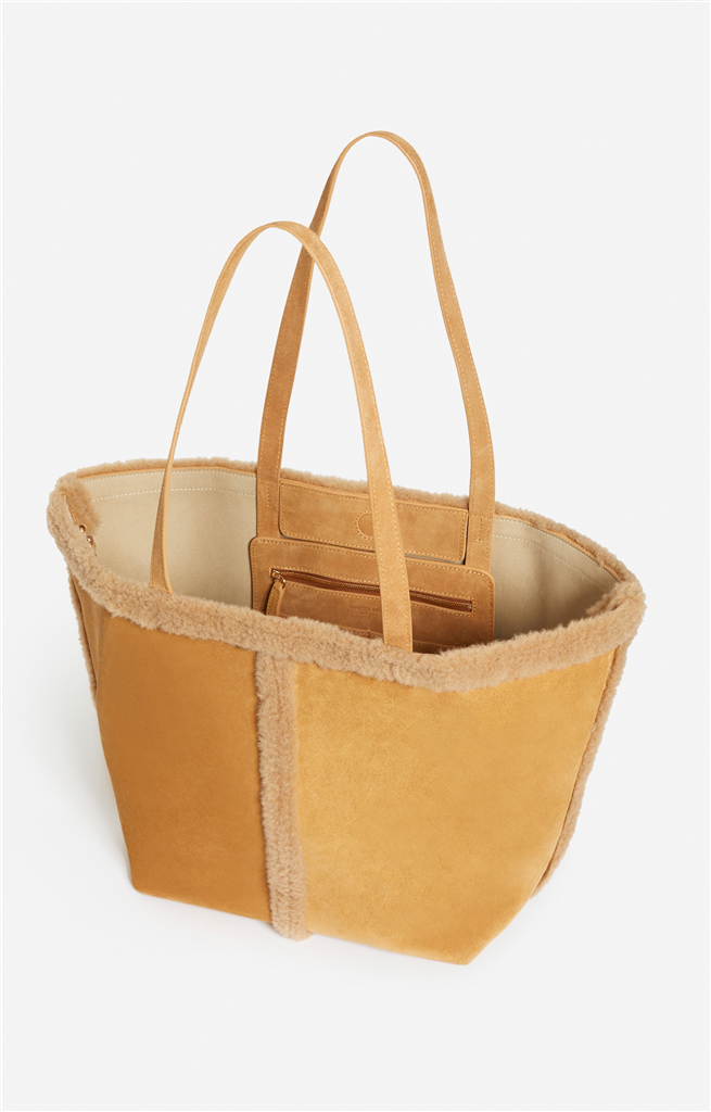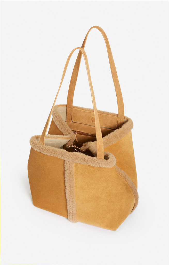 Douillet et élégant, ce Daily, de la maison Vanessa Bruno, apporte chaleur et sophistication. Présenté dans sa version Grand en cuir de vachette shearling camel doux et texturé. Grâce à deux longues anses, le porté épaule est confortable même en cas d’un manteau épais. Idéal pour contenir un ordinateur portable, un format A4 ainsi que vos essentiels. – Matière : 100% Cuir de Vachette (principale), 100% Polyester Recyclé (secondaire), Doublure intérieur 50% Polyamide et 45% Polyuréthane – Origine : Italie – Forme : Cabas – Taille : Grand – Porté : Main ou épaule – Fermeture : Aimant et mousquetons – Bandoulière : Non – Dimensions : L 33 cm x l 16 cm x H 56 cm, Hauteur anses 29cm – Référence : 5HVD10-V40873 – Entretien : Ne pas repasser. Ne pas effectuer de blanchiment. Pas d’entretien professionnel à sec.