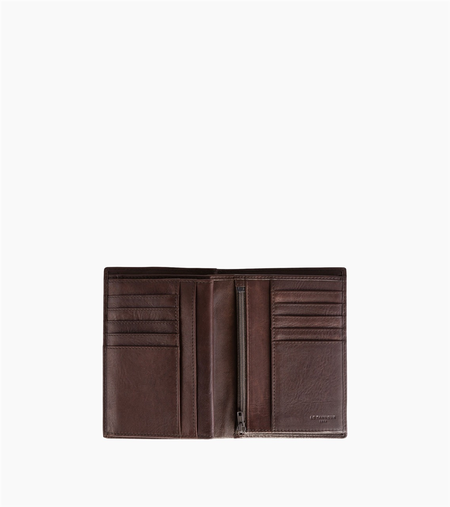 Gary, la ligne aux innombrables modèles en cuir huilé de la maison Le Tanneur, s’adapte à toutes les situations et besoins de la vie quotidienne. Présenté dans sa version Grand portefeuille européen (vertical) à 3 volets, dans un cuir de vachette huilé pleine fleur. Doté d’une finition ton sur ton, d’une poche monnaie zippée, de 3 poches pour papiers/carte d’identité (ancien format), de 2 poches plates, 2 poches à billets/tickets et de 10 emplacement pour cartes. Ce modèle s’intègre parfaitement dans une poche de pantalon, d’une veste/manteau ou encore dans une sacoche. – Matière : 100% Cuir de Vachette pleine fleur, Doublure textile – Forme : Portefeuille européen – Taille : Grand – Fermeture : Aucune – Dimensions : L 10 cm x l 1 cm x H 15 cm – Référence : TRA3342 – Entretien : Utilisez un lait incolore pour cuir une fois par an pour nettoyer et nourrir le cuir en douceur.