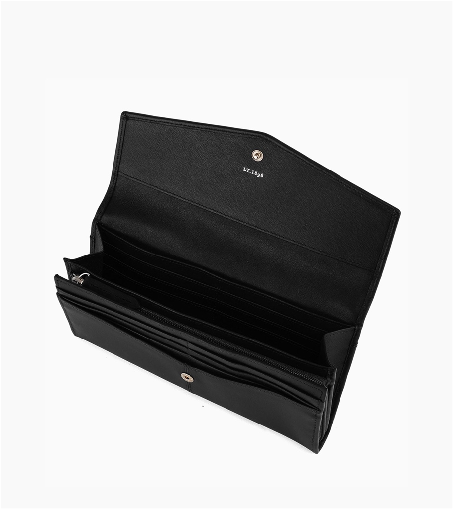 La ligne Charlotte de la maison Le Tanneur est une collection aux multiples modèles de petite maroquinerie répondant aux différents besoins quotidiens des femmes. Ce grand portefeuille est présenté dans sa version bouton à pression en cuir de vachette lisse pleine fleur. Doté d’une poche plate arrière et d’un compartiment principal avec un soufflet, une poche monnaie zippée et de 12 fentes pour cartes. Ce modèle s’intègre parfaitement dans un grand sac pour transporter tous vos essentiels. – Matière : 100% Cuir de Vachette pleine fleur, Doublure textile – Forme : Portefeuille – Taille : Grand – Fermeture : Par pression – Dimensions : L 19 cm x l 1 cm x H 10 cm – Référence : TOTT3302 – Entretien : Utilisez un lait incolore pour cuir une fois par an pour nettoyer et nourrir le cuir en douceur.