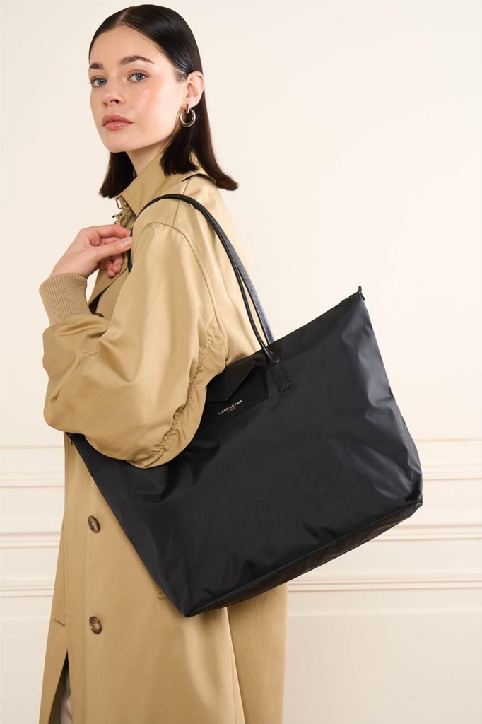 La maison Lancaster propose la collection Smart KBA confectionnée en toile, pour encore plus de légèreté. Présenté dans sa version Grand Sac cabas épaule, il se porte à la main ou à l’épaule. Doté d’une petite poche à rabat pression pour carte, d’une poche zippée au dos et d’un compartiment principal avec une poche zippée. Ce modèle léger et confortable emporte vos essentiels et un appareil jusqu’à 17 pouces au quotidien. – Matière : 100% Nylon/Polyamide, Sans doublure – Origine : Non communiqué – Forme : Sac cabas épaule – Taille : Grand – Porté : Main ou épaule – Fermeture : Zippée – Anses : Poignées longues, doubles, non réglables – Bandoulière : Non – Dimensions : L 35 cm x l 14 cm x H 30 cm, Hauteur anses 73 cm – Poids : 0,390 kg – Référence : 516-31