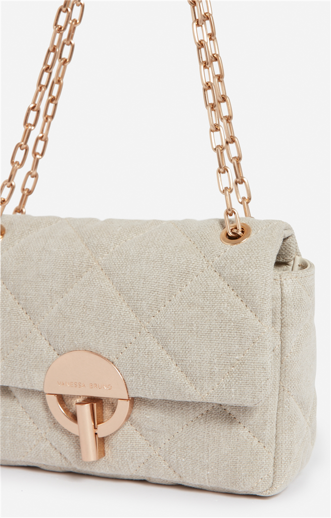 Grand classique de la maison Vanessa Bruno, la ligne Moon est revisité dans une version plus estivale. Présenté dans sa version Grand en lin matelassé, il séduit par sa texture sophistiqué et ses lignes harmonieuses. – Matière : 100% Lin (principale), 100% Cuir de Vachette (secondaire), Doublure intérieur 100% Coton – Origine : Italie – Forme : Sac à rabat – Taille : Grand – Porté : Épaule ou croisé – Fermeture : Fermoir coulissant laiton brossé – Bandoulière : Ajustable en cuir et chaîne – Dimensions : L 31 cm x l 16 cm x H 25 cm, Hauteur bandoulière (porté plus long) 53 cm, Hauteur bandoulière (porté plus court) 31 cm – Référence : 4HVE70-V40329 – Entretien : Ne pas laver, ni sécher en machine. Ne pas repasser. Ne pas effectuer de blanchiment. Pas d’entretien professionnel à sec.