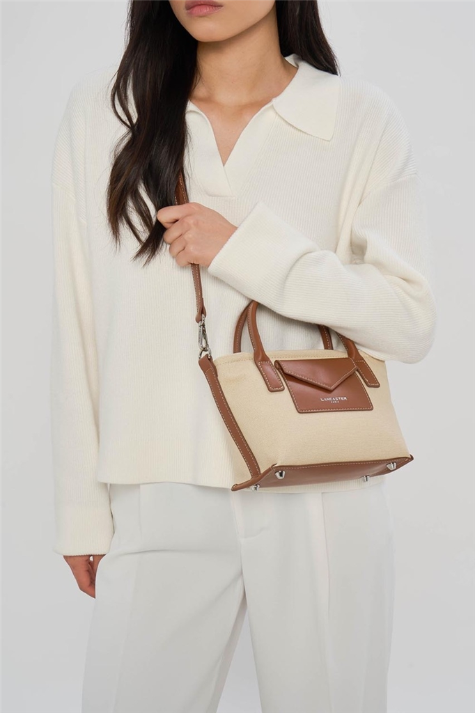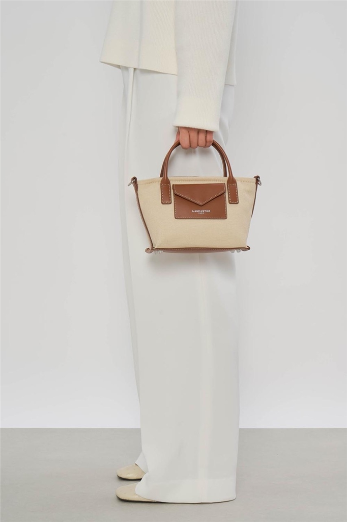 La ligne Canvas KBA, de la maison Lancaster, est confectionnée de coton et garnie de cuir de vachette. Présentée dans sa version Mini Cabas, portez-le à la main avec ses anses, à l’épaule ou croisé grâce à sa bandoulière réglable et amovible. Doté de 4 pieds en métal, d’un emplacement frontal à pression pour cartes, une poche intérieure zippée ainsi qu’une poche intérieure simple. – Matière : 100% Coton garni de cuir de Vachette, Doublure Polyester – Forme : Cabas – Taille : Mini – Porté : Main, épaule ou croisé – Fermeture : Zippée – Anses : Doubles courtes, non réglables – Bandoulière : Ajustable et amovible en cuir – Dimensions : L 20 cm x l 8,5 cm x H 15,5 cm, Hauteur bandoulière (porté court) 103 cm, Hauteur bandoulière (porté long) 122 cm – Poids : 0,39 kg – Référence : 518-049