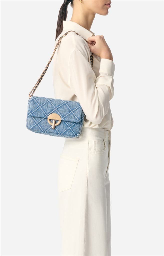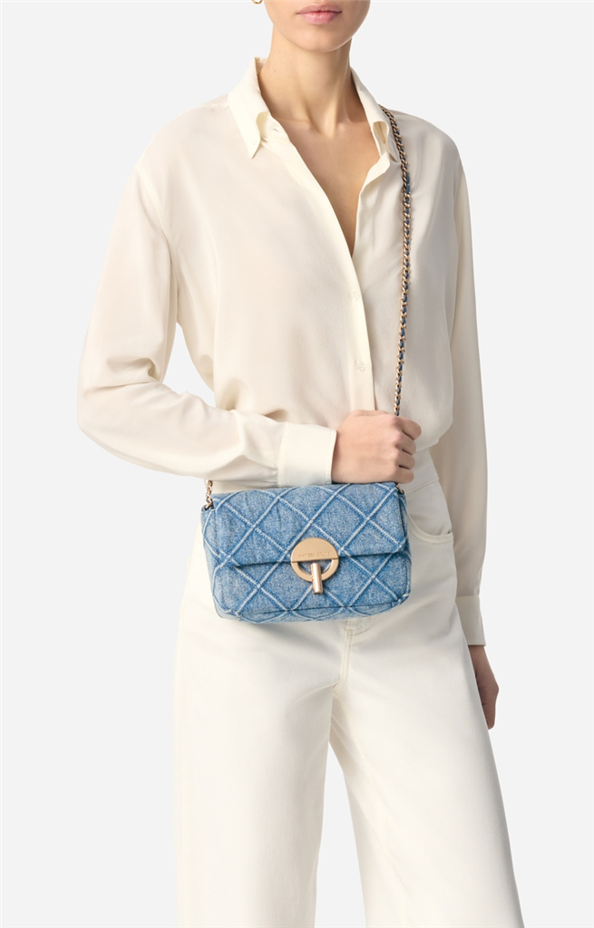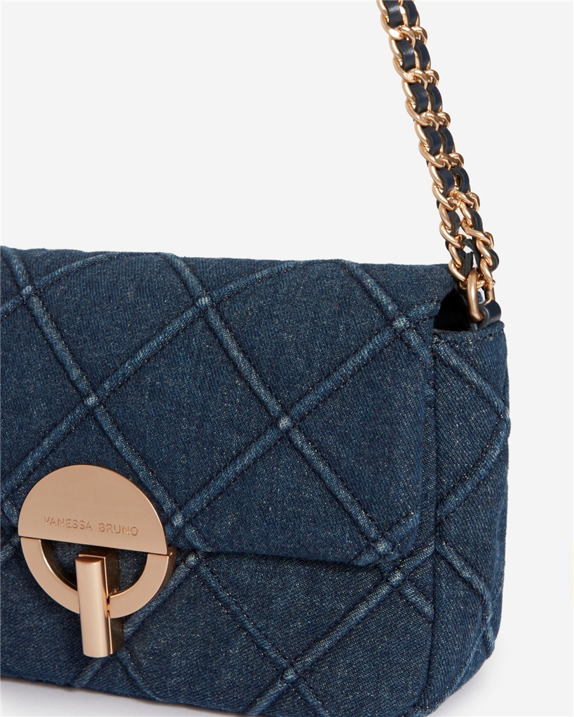Ce modèle Moon en Denim débossé fait de lui une pièce moderne et féminine de la maison Vanessa Bruno. Présenté dans sa version Moyen en coton, il présente un motif matelassé en losanges, directement cousu dans le tissu, créant une texture en relief subtil et sophistiqué. • Matière : 100% Coton (principale), 100% Cuir de Vachette (secondaire), Doublure intérieure 100% Coton • Origine : Cambodge • Forme : Trotteur • Taille : Moyen • Porté : Main, épaule ou croisé • Fermeture : Fermoir coulissant laiton brossé • Bandoulière : Ajustable en coton et chaîne dorée • Dimensions : L 21 cm x l 6 cm x H 13,5 cm, Hauteur bandoulière (porté plus long) 53 cm, Hauteur bandoulière (porté plus court) 29 cm • Référence : 5HVE14-V40533 • Entretien : Ne pas laver, ni sécher en machine. Ne pas repasser. Ne pas effectuer de blanchiment. Pas d’entretien professionnel à sec.Ce modèle Moon en Denim débossé fait de lui une pièce moderne et féminine de la maison Vanessa Bruno. Présenté dans sa version Moyen en coton, il présente un motif matelassé en losanges, directement cousu dans le tissu, créant une texture en relief subtil et sophistiqué. • Matière : 100% Coton (principale), 100% Cuir de Vachette (secondaire), Doublure intérieure 100% Coton • Origine : Cambodge • Forme : Trotteur • Taille : Moyen • Porté : Main, épaule ou croisé • Fermeture : Fermoir coulissant laiton brossé • Bandoulière : Ajustable en coton et chaîne dorée • Dimensions : L 21 cm x l 6 cm x H 13,5 cm, Hauteur bandoulière (porté plus long) 53 cm, Hauteur bandoulière (porté plus court) 29 cm • Référence : 5HVE14-V40533 • Entretien : Ne pas laver, ni sécher en machine. Ne pas repasser. Ne pas effectuer de blanchiment. Pas d’entretien professionnel à sec.