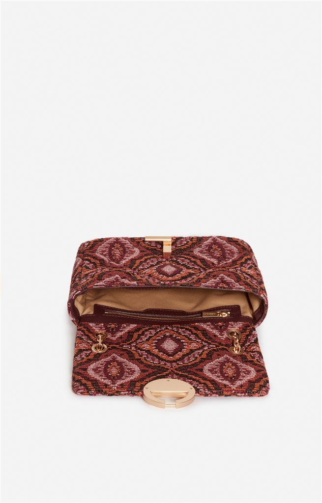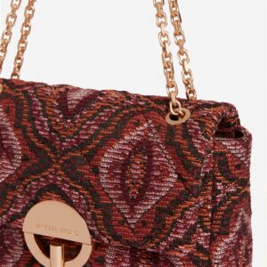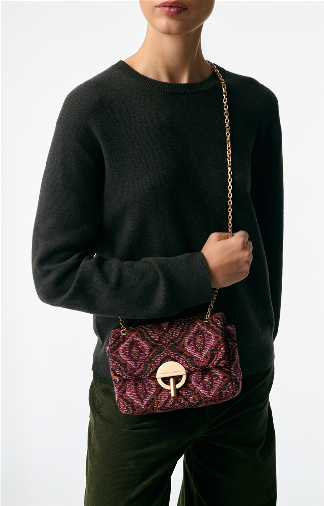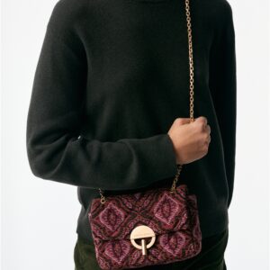 Ce modèle Moon conjugue esprit couture et allure bohème de la maison Vanessa Bruno. Présenté dans sa version Moyen en tissu jacquard, il séduit par son motif géométrique et ses finitions remarquable. – Matière : 66% Coton, 30% Polyester et 4% Autres Fibres (principale), 100% Cuir de Vachette (secondaire), Doublure intérieur 100% Coton – Origine : Italie – Forme : Sac à rabat – Taille : Moyen – Porté : Épaule ou croisé – Fermeture : Fermoir coulissant laiton brossé – Bandoulière : Ajustable en chaîne dorée – Dimensions : L 21 cm x l 6 cm x H 13,5 cm, Hauteur bandoulière (porté plus long) 53 cm, Hauteur bandoulière (porté plus court) 29 cm – Référence : 5HVE03-V40533 – Entretien : Ne pas laver, ni sécher en machine. Ne pas repasser. Ne pas effectuer de blanchiment. Pas d’entretien professionnel à sec.