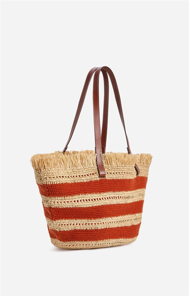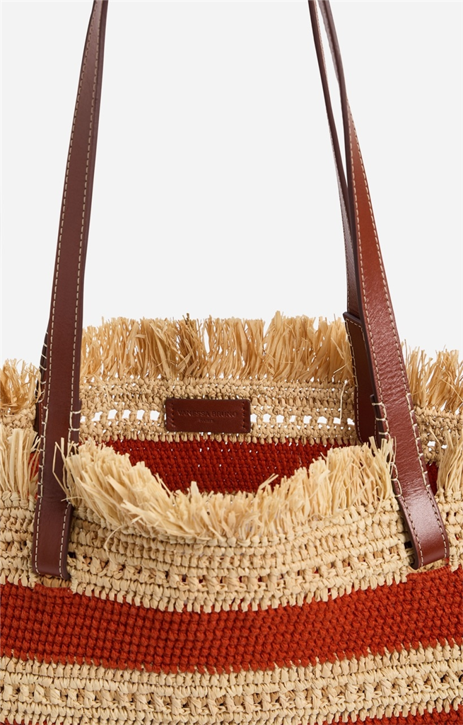 Comme chaque année, la maison Vanessa Bruno, passe à l’heure estivale avec sa matière Raphia dont son état d’esprit transporte sous le soleil et le farniente. Présenté dans sa version Panier, il est orné de bandes colorées en coton, souligné par des franges sur le haut du panier et contrastés avec des anses en cuir. Ce modèle est idéal pour toutes vos escapades en apportant une note chic et naturelle à votre garde-robe. – Matière : 100% Raphia (principale), 100% Coton (secondaire), 100% Cuir de Vachette (tertiaire) – Origine : Madagascar – Forme : Panier – Taille : TU – Porté : Main ou épaule – Fermeture : Aucune – Anses : Doubles longues en cuir, non amovible et non réglable – Bandoulière : Non – Dimensions : L 28 cm x l 15 cm x H 53 cm, Hauteur anses 29 cm – Référence : 6EVE23-V40928 – Entretien : Les sacs en raphia sont faits main dans une matière naturelle et artisanale, ils restent dont fragiles et précieux. Afin de conserver au maximum la qualité de votre sac, nous vous suggérons de le ranger dans son pochon à l’abri de la lumière et dans un endroit sec après chaque utilisation. Éviter tout contact avec de l’eau ou de la crème solaire. Une trop forte exposition au soleil peut altérer la couleur naturelle de votre sac. En cas de contact avec de l’eau, faite le sécher à l’air libre et protéger-le avec du papier journal afin d’absorber l’humidité. Si un pli disgracieux venait à prendre sur votre produit, nous vous conseillions d’appliquer de la vapeur à distance du produit afin de remodeler la fibre naturelle. Chaque modèle est unique et tressé à la main dans les ateliers de la marque à Madagascar, ainsi il peut présenter d’éventuelles irrégularités dues au caractère naturel de la fibre et à la fabrication artisanale du produit.