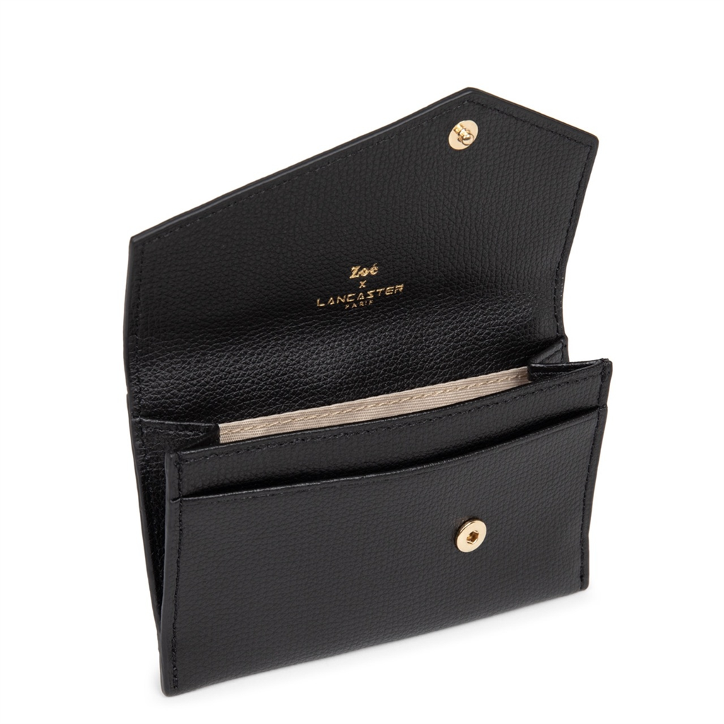 La maison Lancaster et la créatrice de contenu JusteZoé ont collaboré ensemble pour créer une collection qui mélange des touches sucrées et ambiance décalée. Présenté dans sa version Porte-cartes, il est confectionné en cuir de vachette. Doté d’un compartiment monnaie/billets, d’une poche zippée et de 4 fentes pour cartes. Ce modèle s’emporte facilement dans des sacs de toute taille. – Matière : 100% Cuir de vachette, Doublure Textile – Origine : Non communiqué – Forme : Porte-cartes – Taille : TU – Fermeture : Rabat avec pression – Dimensions : L 13 cm x l 3 cm x H 9 cm – Poids : 0,128 kg – Référence : 180-101 – Entretien : Nous conseillons d’imperméabilisé votre porte-cartes avant utilisation. Nettoyer régulièrement votre sac avec un chiffon doux pour enlever la poussière. Utilisez un chiffon pour la saletés et un lait nourrissant incolore pour cuir pour un nettoyage plus en profondeur. Évitez l’exposition à la lumière, à la chaleur, à l’eau et aux corps gras.