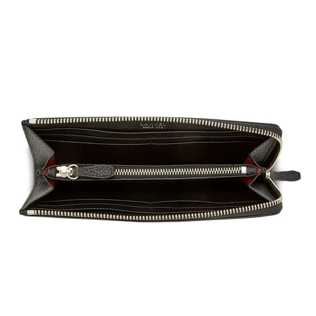 La ligne Ninon, de la maison Lancel, se veut jeune et accessible à porter de jour comme de nuit. Présenté dans sa version portefeuille slim en cuir de vachette, il est idéal pour l’intégrer dans des petits ou grands sacs. Doté de deux poches plaquées multifonctions, deux compartiments pour billets, papiers ou tickets, ainsi qu’un compartiment zippé pour la monnaie et de huit fentes pour cartes. – Matière : 100% Cuir de Vachette grainé, Doublure textile – Origine : Europe – Forme : Portefeuille slim – Taille : TU – Fermeture : Zippée – Dimensions : L 20 cm x l 2,5 cm x H 11 cm – Référence : A09974 – Entretien : Nous conseillons d’appliquer sur un chiffon doux et propre une crème universelle incolore pour cuir afin de raviver les couleurs ou retirer certaines taches superficielles.