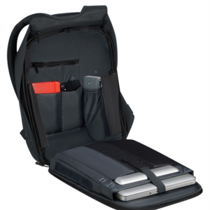 La ligne Securipak 2.0, de Samsonite, est optimisée pour la sécurité. Présenté dans sa version sac à dos 14,1” en polyester recyclé, il est équipé de poches cachées et d’une couche de tissu résistant aux coupures. Les sacs sont également structurés pour conserver leur forme lors de vos déplacements. – Matière : Polyester recyclé – Modèle : Sac à dos – Taille : TU – Capacité : 13L – Poids : 0,7kg – Dimensions : H 41,5 cm x L 28 cm x l 15 cm – Référence : 150940 – Garantie : Garantie légale Extérieur – Tissu : Souple – Fermeture : Fermetures à glissière – Poignée : Poignée haute – Poches extérieures : Poches latérales cachées et poche supérieur RFID – Bretelles : Bretelles ergonomiques – Passant arrière pour bagage : Oui – Porte-bouteille : Oui – Détails réfléchissant : Oui – Matériau imperméable : Oui Intérieur – Compartiment principal avec les poches de protection RFID protègent vos cartes contre la fraude en plaçant un bloqueur d’onde entre l’extérieur de votre produit et son revêtement intérieur – Compartiment ordinateur jusqu’à 14,1 pouces – Compartiment pour tablette jusqu’à 10,5 pouces – Compartiment Power Bank : Oui (batterie externe non incluse) Durabilité Environ 99% du poids du rembourrage alvéolé arrière, du tissu extérieur, de la doublure intérieure et de la fermeture éclair sont fabriqués à partir de plastique PET recyclé post-consommation, permettant d’éviter la destruction de l’équivalent de 36 bouteilles d’eau en plastique (0,5L – 20g).