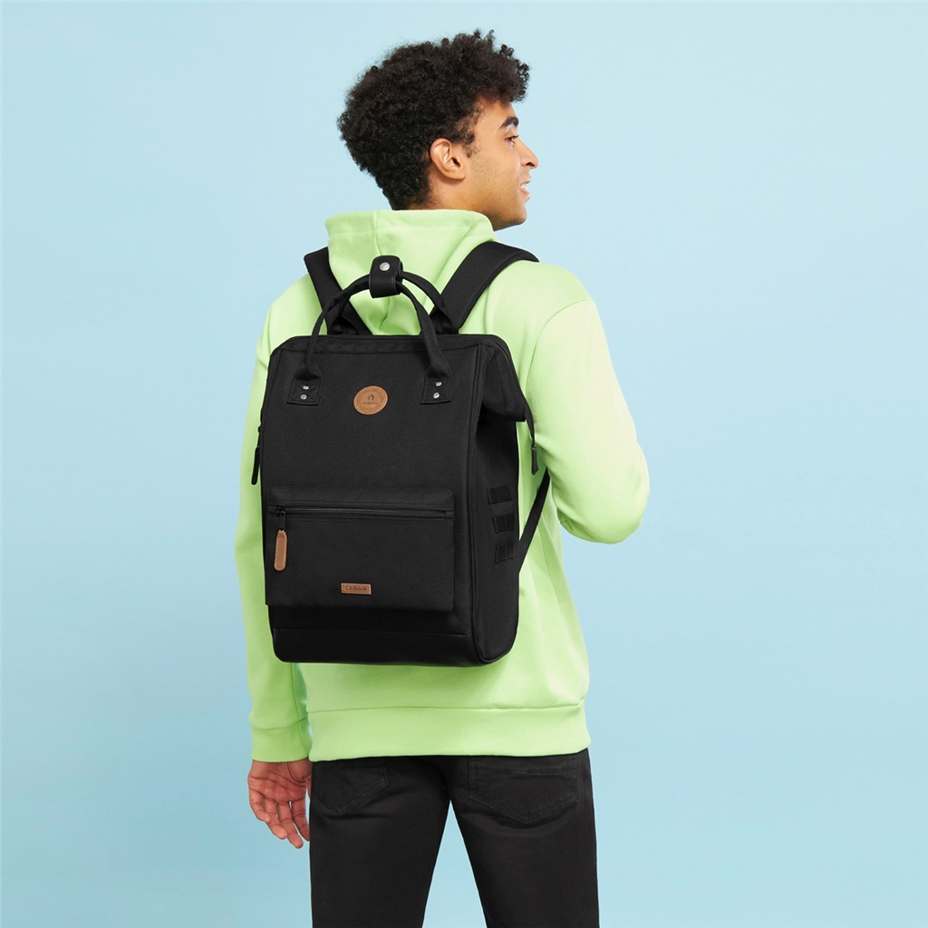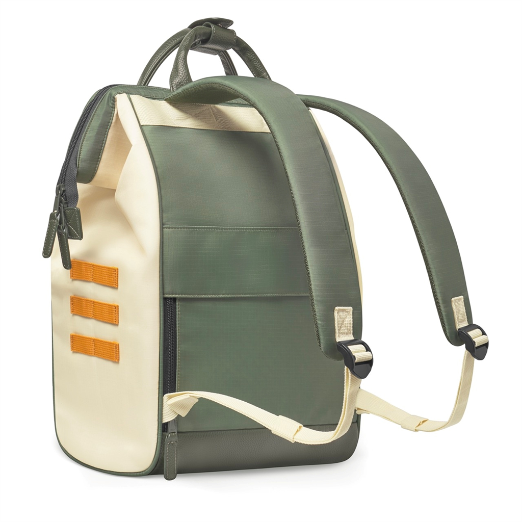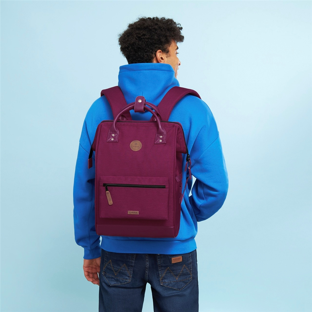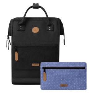 Le sac à dos Adventurer Large s’adapte à toutes vos aventures, alliant style, confort et qualité. Il protège votre ordinateur portable jusqu’à 15 pouces, s’ouvre facilement grâce à sa large ouverture et ses bretelles rembourrées et respirantes pour un port agréable. Vegan, déperlant, modulable avec le changement de pochettes selon vos envies. Doté d’un passant pour valise, il est conçu pour durer toute une vie. – Matière : 100% Polyester (principale), 100% Polyuréthane (enduit), Doublure intérieur 100% Polyester – Forme : Sac à dos – Taille : Large – Poids : 0,9kg – Volume : 18L – Garantie : À vie – Porté : Épaule ou main – Fermeture : Zippée – Anses : Oui – Dimensions : L 29 cm x l 17 cm x H 46 cm – Référence : Sac à dos Adventurer Large – Entretien : Nous conseillons d’imperméabilisé votre sac avant utilisation. Ne pas passer à la machine. Nettoyer délicatement avec un linge humide et du savon.