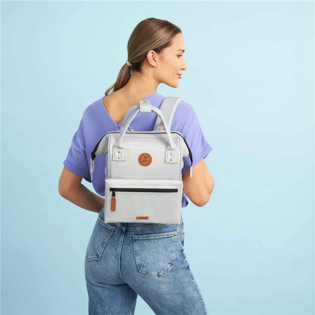 Le sac à dos Adventurer Small s’adapte à toutes vos aventures, alliant style, confort et qualité. Il protège votre tablette jusqu’à 10 pouces, s’ouvre facilement grâce à sa large ouverture et ses bretelles rembourrées et respirantes pour un port agréable. Vegan, déperlant, modulable avec le changement de pochettes selon vos envies. Doté d’un passant pour valise, il est conçu pour durer toute une vie. – Matière : 100% Polyuréthane (principale et enduit), Doublure intérieure 100% Polyester – Forme : Sac à dos – Taille : Small – Poids : 0,75kg – Volume : 10L – Garantie : À vie – Porté : Épaule ou main – Fermeture : Zippée – Anses : Oui – Dimensions : L 23 cm x l 13 cm x H 32 cm – Référence : Sac à dos Adventurer Small – Entretien : Nous conseillons d’imperméabilisé votre sac avant utilisation. Ne pas passer à la machine. Nettoyer délicatement avec un linge humide et du savon.