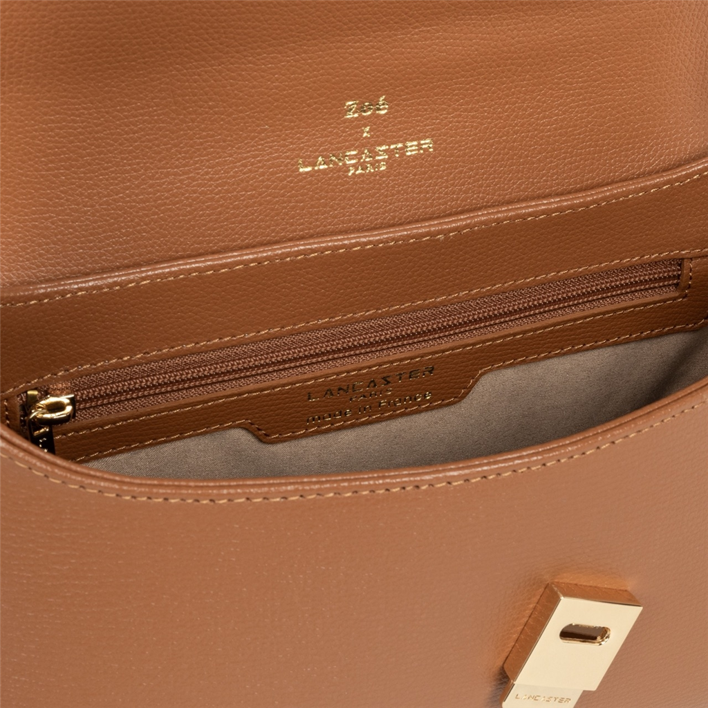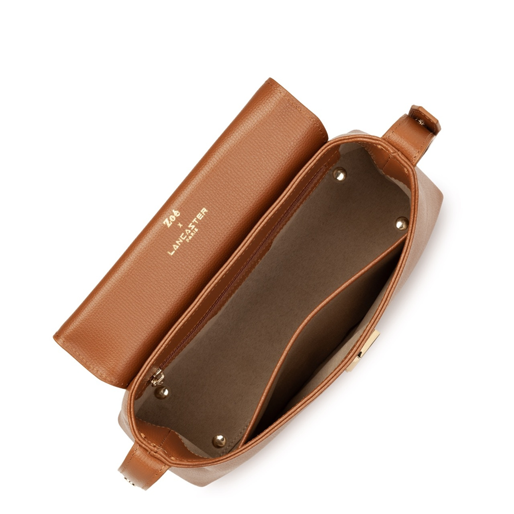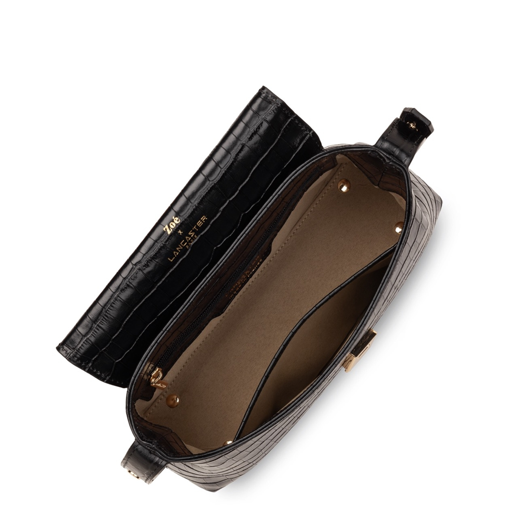 La maison Lancaster et la créatrice de contenu JusteZoé ont collaboré ensemble pour créer une collection qui mélange des touches sucrées et ambiance décalée. Présenté dans sa version Sac à main, il est fabriqué en Italie et confectionné en cuir de vachette grainé. Doté d’un rabat graphique avec fermoir, d’une bandoulière amovible, de 4 pieds en métal, d’une poche plaquée au dos et d’un compartiment principal avec une poche plaquée et une poche zippée. Ce modèle transportera vos essentiels de jour comme de nuit. – Matière : 100% Cuir de vachette, Doublure Textile – Origine : Italie – Forme : Sac à main – Taille : TU – Porté : Main, épaule ou croisé – Fermeture : Rabat avec fermoir – Anse : Oui – Bandoulière : Ajustable – Dimensions : L 27 cm x l 8 cm x H 15 cm, Hauteur bandoulière (porté plus court) 62 cm, Hauteur bandoulière (porté plus long) 113 cm – Poids : 0,480 kg – Référence : 480-012 – Entretien : Nous conseillons d’imperméabilisé votre sac avant utilisation. Nettoyer régulièrement votre sac avec un chiffon doux pour enlever la poussière. Utilisez un chiffon pour la saletés et un lait nourrissant incolore pour cuir pour un nettoyage plus en profondeur. Évitez l’exposition à la lumière, à la chaleur, à l’eau et aux corps gras.