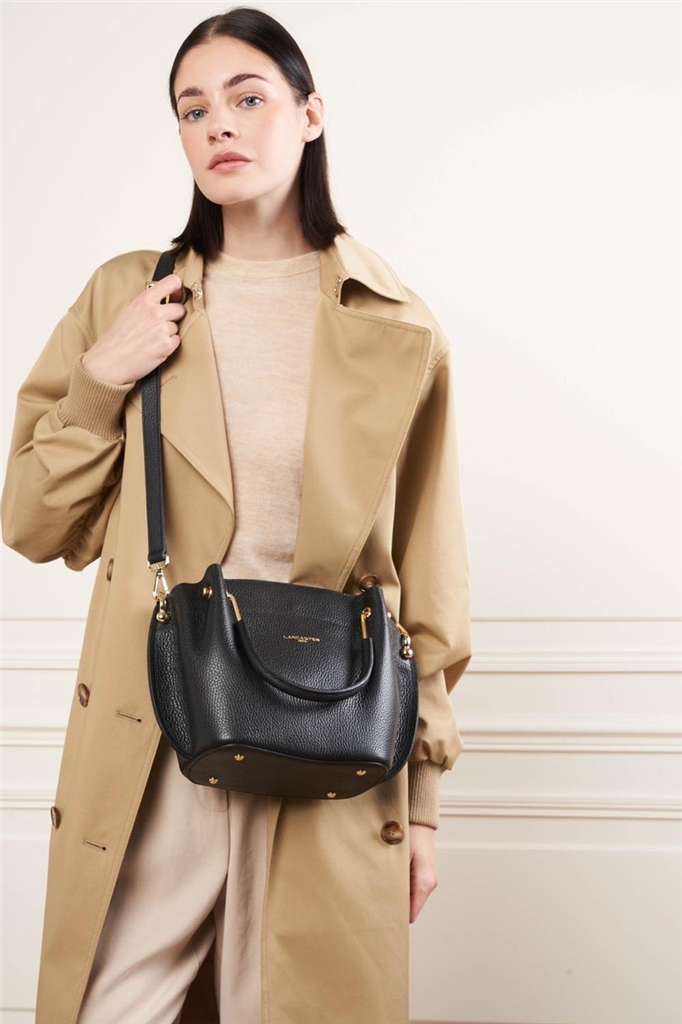 La ligne Foulonné Double de la maison Lancaster, est une collection confectionnée en France dans cuir de vachette et doublée en vachette. Présenté dans sa version Sac à main, il se porte à la main, à l’épaule ou porté travers. Doté d’anses courtes, non-réglables, d’une bandoulière réglable et amovible, de deux poches intérieures plaquées et d’un compartiment principal zippé avec deux poches plaquées. Moderne et intemporel, ce modèle emporte vos essentiels au quotidien. – Matière : 100% Cuir de Vachette grainé, Doublure Vachette – Origine : France – Forme : Sac à main – Taille : TU – Porté : Main, épaule ou croisé – Fermeture : Zippé – Anses : Courtes, non amovible, rabattables – Bandoulière : Ajustable et amovible – Dimensions : L 21 cm x l 12 cm x H 22,5 cm, Hauteur anses 10 cm, Hauteur bandoulière (porté plus court) 63 cm, Hauteur bandoulière (porté plus long) 93 cm – Poids : 0,860 kg – Référence : 470-18 – Entretien : Nous conseillons d’imperméabilisé votre sac avant utilisation. Nettoyer régulièrement votre sac avec un chiffon doux pour enlever la poussière. Utilisez un chiffon pour la saletés et un lait nourrissant incolore pour cuir pour un nettoyage plus en profondeur. Évitez l’exposition à la lumière, à la chaleur, à l’eau et aux corps gras.
