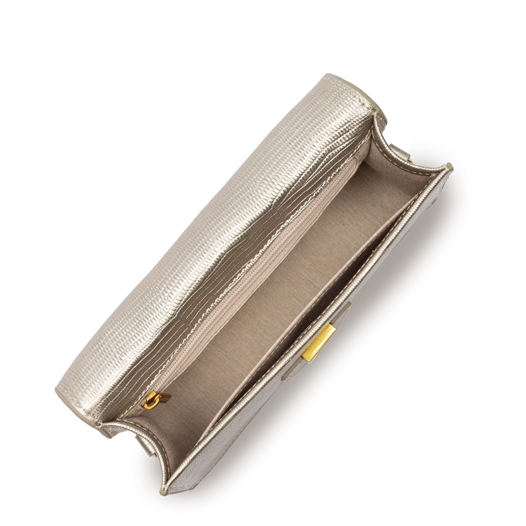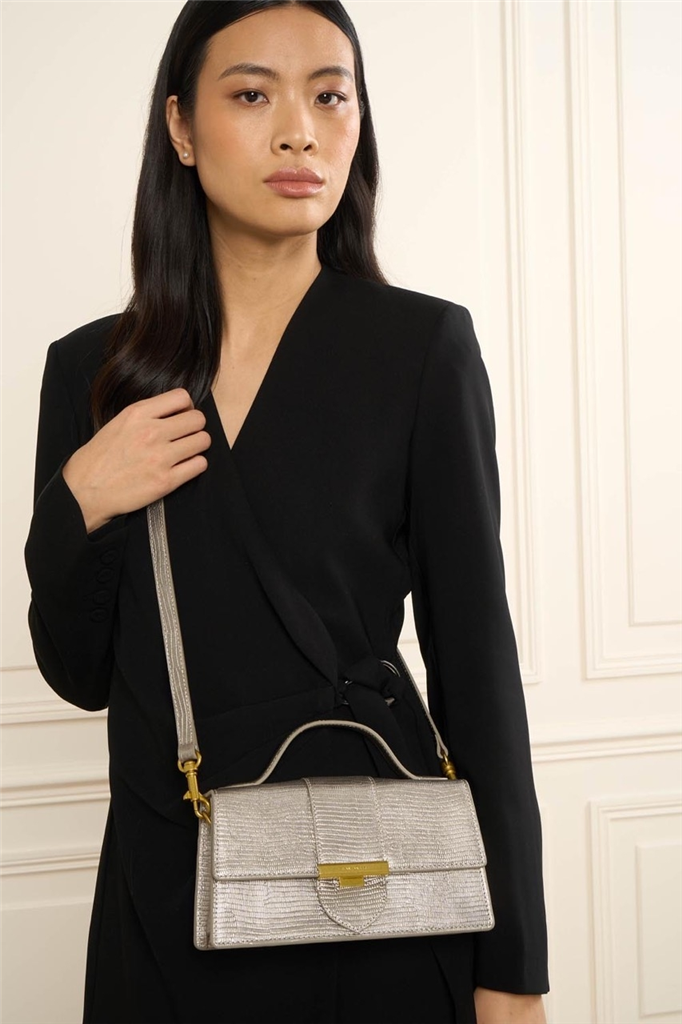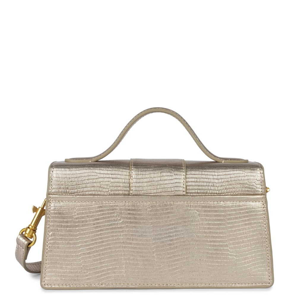 La ligne Exo Ily, de la maison Lancaster, est une collection exotique confectionnée en cuir de vachette finition grainé effet croco. Présenté dans sa version Sac à main, il se porte à la main, à l’épaule ou porté travers. Doté d’une poignée courte, d’une bandoulière réglable et amovible et d’un compartiment principal avec une poche zippée et une poche plaquée. Atypique et classique, ce modèle transporte vos essentiels au quotidien. – Matière : 100% Cuir de Vachette grainé, Doublure Polyester – Origine : Non communiqué – Forme : Sac à main – Taille : TU – Porté : Main, épaule ou croisé – Fermeture : Rabat avec fermoir – Anse : Courte, non réglables – Bandoulière : Ajustable et amovible – Dimensions : L 24 cm x l 7 cm x H 13 cm, Hauteur bandoulière (porté plus court) 100 cm, Hauteur bandoulière (porté plus long) 120 cm – Poids : 0,526 kg – Référence : 531-013 – Entretien : Nous conseillons d’imperméabilisé votre sac avant utilisation. Nettoyer régulièrement votre sac avec un chiffon doux pour enlever la poussière. Utilisez un chiffon pour la saletés et un lait nourrissant incolore pour cuir pour un nettoyage plus en profondeur. Évitez l’exposition à la lumière, à la chaleur, à l’eau et aux corps gras.