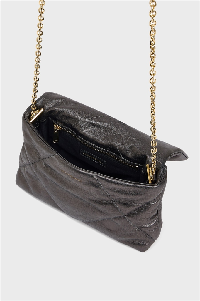 La ligne Le Fanny, de la maison Gérard Darel, est un petit bijou de subtilité et a tout d’une icône. Présenté dans sa version Sac porté travers en cuir matelassé métallisé, son format idéal et sa bandoulière ajustable offrent un porté confortable, à la fois chic et pratique. Sa finition métallisé et son toucher doux, pensée comme un nuage de douceur en fait une véritable pièce de créateur. – Matière : 100% Cuir d’Agneau – Forme : Sac porté travers – Taille : TU – Porté : Épaule ou croisé – Fermeture : Par deux aimants cachés – Anses : Non – Bandoulière : Ajustable et amovible en chaîne et cuir – Dimensions : L 24 cm x l 6 cm x H 15,5 cm, Hauteur bandoulière (porté plus court) 48 cm, Hauteur bandoulière (porté plus long) 54 cm – Référence : DAS56A463 – Entretien : Nous conseillons d’imperméabilisé votre sac avant utilisation. Ne pas laver.