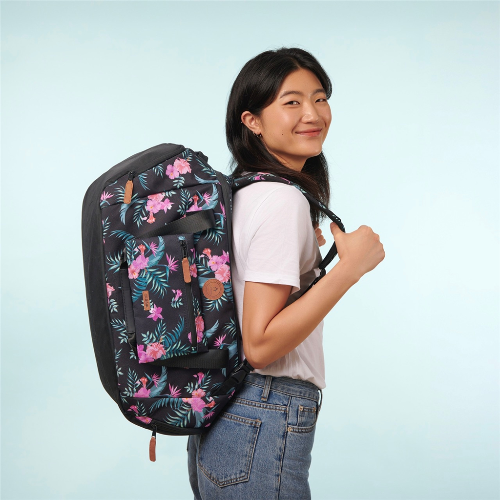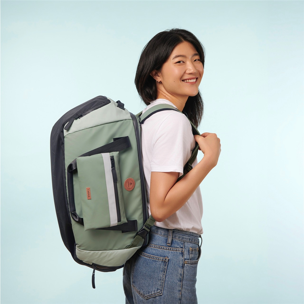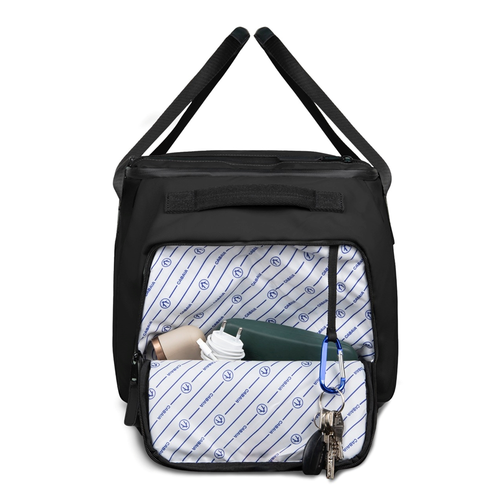 La Duffle Explorer de la marque Cabaïa, allie praticité et confort pour vos week-ends. Doté d’une ouverture par le dessus, d’une poche gourde inclinée à 45° et de anses et bretelles permettent de le porter à la main ou sur le dos. Il comprend un compartiment ordinateur jusqu’à 15 pouces ainsi qu’un compartiment dédie pour les chaussures. Vegan et déperlant, il est garanti à vie et modulable grâce aux pochettes avant interchangeables. – Matière : 100% Polyester recyclé, Doublure intérieure 100% Polyester – Forme : Sac de voyage – Taille : TU – Poids : 1,43kg – Volume : 40L – Garantie : À vie – Porté : Main, épaule ou croisé – Fermeture : Zippée – Anses : Anses magnétiques – Bretelles : Ajustable et amovible – Dimensions : L 58 cm x l 28 cm x H 30 cm – Référence : Duffle Explorer – Entretien : Nous conseillons d’imperméabilisé votre sac avant utilisation. Ne pas passer à la machine. Nettoyer délicatement avec un linge humide et du savon.