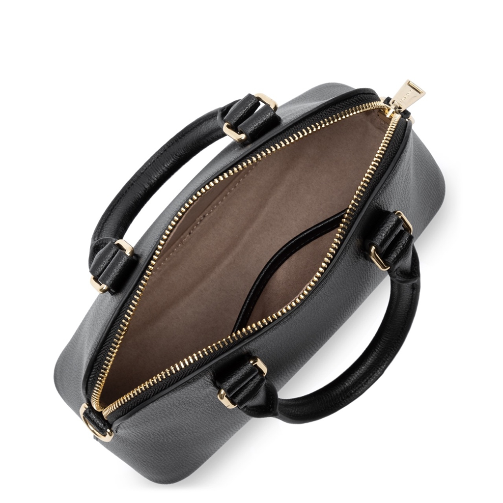 La ligne Sierra Jia, de la maison Lancaster, est une collection confectionnée en refente de cuir de vachette grainé. Présenté dans sa version Sac demi lune, il se porte à la main, à l’épaule ou travers. Doté de 4 pieds en métal et d’un compartiment principal avec une poche zippée et une poche plaquée. Ce modèle structuré emporte vos essentiels de jour comme de nuit. – Matière : 100% Refente de cuir de vachette, Doublure Polyester aspect suédine – Origine : Non communiqué – Forme : Sac demi lune – Taille : Moyen – Porté : Main, épaule ou croisé – Fermeture : Zippée – Anses : Poignées courtes, rabattables, non réglables – Bandoulière : Ajustable et amovible – Dimensions : L 25 cm x l 10 cm x H 16 cm, Hauteur bandoulière (porté plus court) 84 cm, Hauteur bandoulière (porté plus long) 122 cm – Poids : 0,550 kg – Référence : 538-002 – Entretien : Nous conseillons d’imperméabilisé votre sac avant utilisation. Nettoyer régulièrement votre sac avec un chiffon doux pour enlever la poussière. Utilisez un chiffon pour la saletés et un lait nourrissant incolore pour cuir pour un nettoyage plus en profondeur. Évitez l’exposition à la lumière, à la chaleur, à l’eau et aux corps gras.