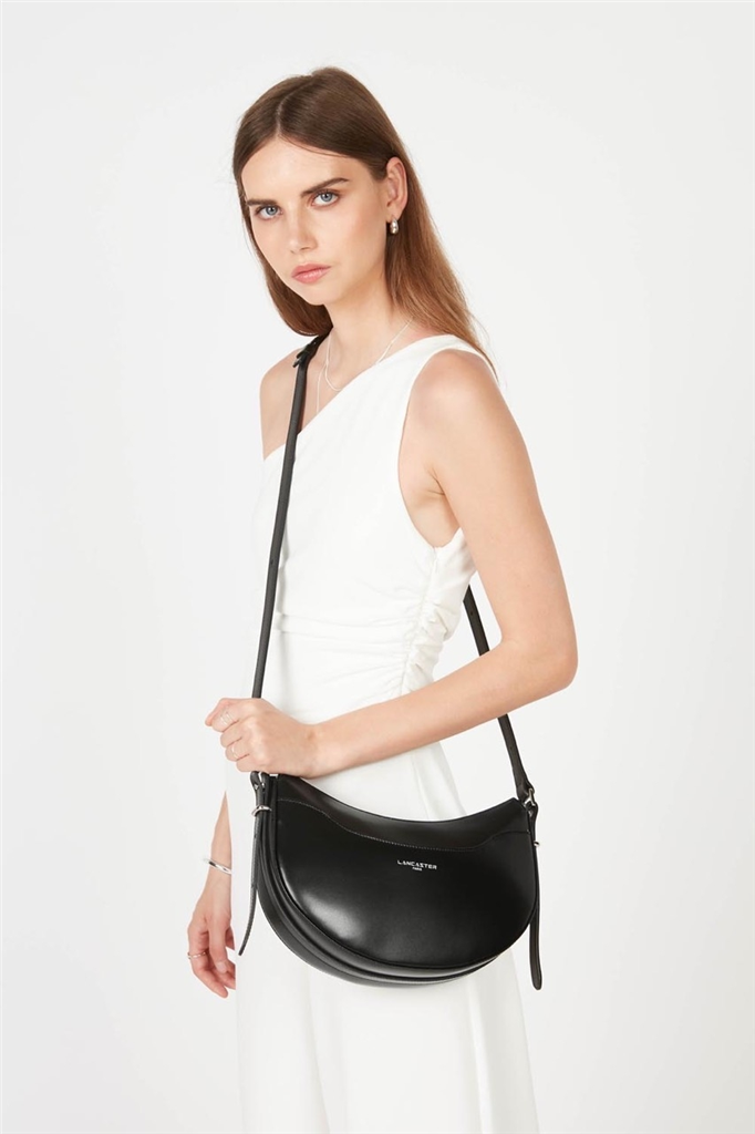 La ligne Suave Ace, de Lancaster, est une collection fabriquée en France en refente de cuir de vachette lisse. Présenté dans sa version Sac demi lune, il se porte à la main, à l’épaule ou travers. Doté d’une bandoulière réglable pouvant être mis à l’épaule et d’un compartiment principal avec une poche zippée et deux poches plaquées. Ce modèle structuré et intemporel emmène vos essentiels de jour comme de nuit. – Matière : 100% Refente de cuir de vachette, Doublure Polyester aspect suédine – Origine : France – Forme : Sac demi lune – Taille : TU – Porté : Main, épaule ou croisé – Fermeture : Zippée – Anses : Non – Bandoulière : Ajustable – Dimensions : L 28 cm x l 8 cm x H 18 cm, Hauteur bandoulière (porté plus court) 62 cm, Hauteur bandoulière (porté plus long) 92 cm – Poids : 0,554 kg – Référence : 433-28 – Entretien : Nous conseillons d’imperméabilisé votre sac avant utilisation. Nettoyer régulièrement votre sac avec un chiffon doux pour enlever la poussière. Utilisez un chiffon pour la saletés et un lait nourrissant incolore pour cuir pour un nettoyage plus en profondeur. Évitez l’exposition à la lumière, à la chaleur, à l’eau et aux corps gras.