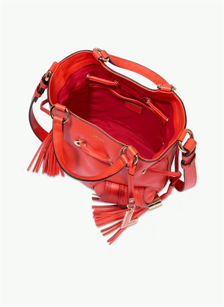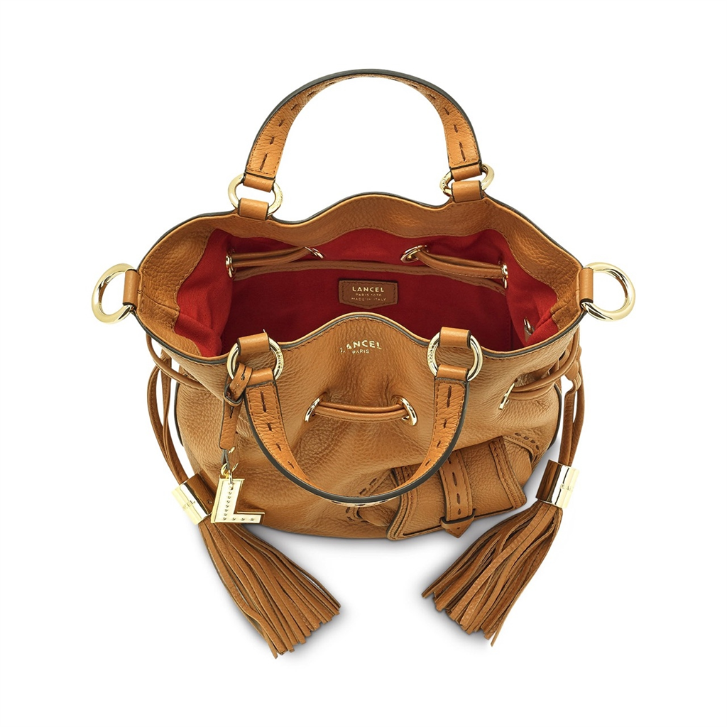 Lancel revisite le mythique et intemporel sac Premier Flirt avec une allure jeune, mode et féminine. Présenté dans sa version S en cuir de vachette, ce sac conserve les codes qui ont fait la notoriété de la ligne grâce à une forme reconnaissable, des détails de pompons en cuir et une poche avant emblématique soulignée par des surpiqûres contrastées. Dotée de 4 pieds de fond en métal, d’un bijou de sac “L” amovible en émail orné de rivets métalliques et d’une poche intérieure zippée. De jour comme de nuit, le Premier Flirt donne du style et de l’élégance en toute occasion. – Matière : 100% Cuir de Vachette grainé, Doublure 100% Nylon – Origine : Italie – Forme : Sac seau – Taille : S – Porté : Main, épaule ou croisé – Fermeture : Liens coulissants en cuir avec pompons – Anses : 2 poignées rabattables en cuir – Bandoulière : Ajustable et amovible en cuir – Dimensions : L 21 cm x l 13 cm x H 20 cm – Référence : A10109 – Entretien : Nous conseillons d’imperméabilisé votre sac avant utilisation. De plus, appliquer sur un chiffon doux et propre une crème universelle incolore pour cuir afin de raviver les couleurs ou retirer certaines taches superficielles.