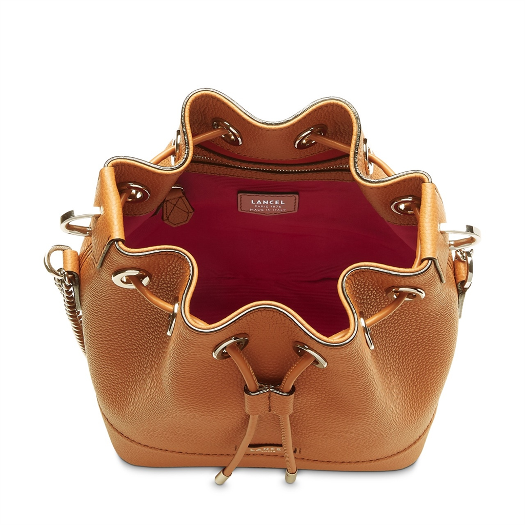 La ligne Ninon, de la maison Lancel, se veut jeune et accessible à porter de jour comme de nuit. Présenté dans sa version sac seau S en cuir de vachette, offre un rendu à la fois structuré et souple. Doté d’un compartiment principal, une poche avant plaquée, une poche arrière zippée, ainsi que des pieds de fond en métal, pour le poser partout. Il est moderne et multifacette avec sa bandoulière chaîne et cuir. – Matière : 100% Cuir de Vachette grainé et lisse, Doublure textile – Origine : Italie – Forme : Sac seau – Taille : S – Porté : Main, épaule ou croisé – Fermeture : Cordon de serrage – Anse : Poignée amovible et interchangeable – Bandoulière : Chaîne et cuir – Dimensions : L 22,5 cm x l 12,5 cm x H 18,5 cm – Référence : A10922 – Entretien : Nous conseillons d’imperméabilisé votre sac avant utilisation. De plus, appliquer sur un chiffon doux et propre une crème universelle incolore pour cuir afin de raviver les couleurs ou retirer certaines taches superficielles.
