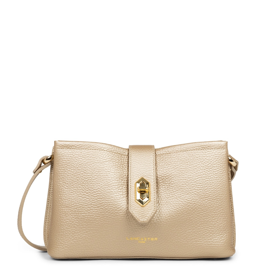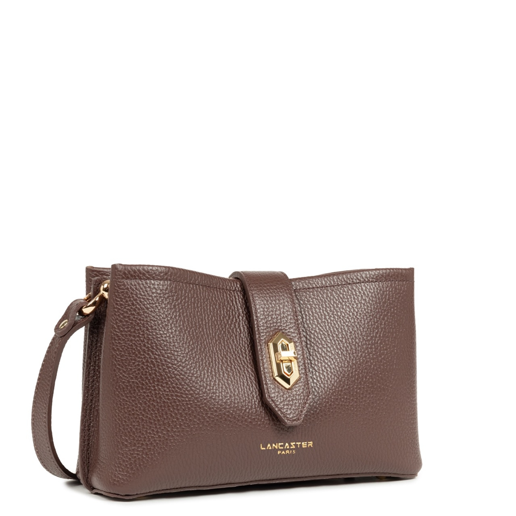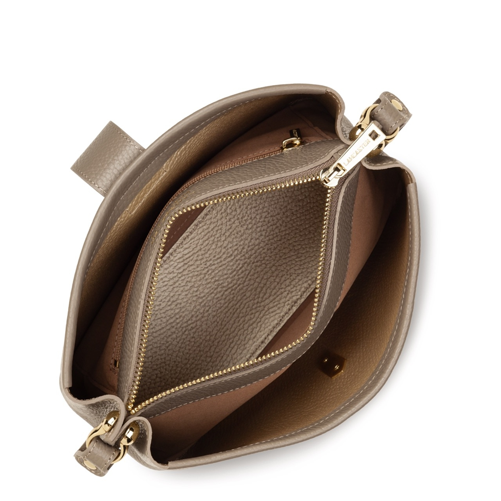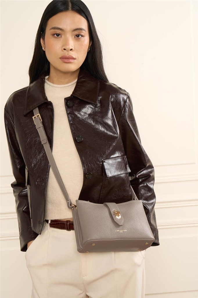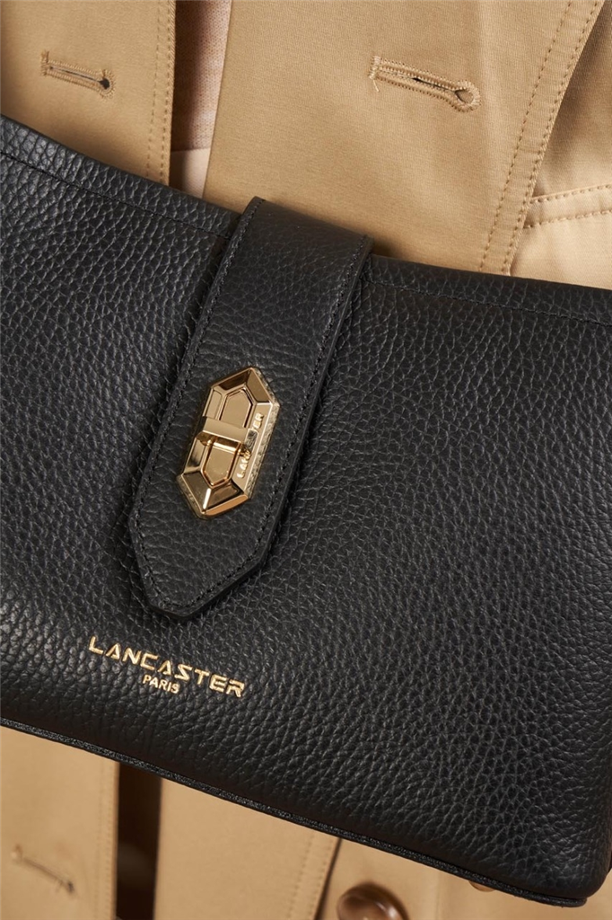 La collection Top Double, de la maison Lancaster, est une ligne fabriquée en France en cuir de vachette grainé. Présenté dans sa version Sac trotteur, il se porte à l’épaule ou travers. Doté d’un rabat avec fermoir, d’une bandoulière réglable et amovible, une poche centrale zippée, une poche avec une poche zippée et une poche à pression. – Matière : 100% Cuir de vachette, Doublure Vachette – Origine : France – Forme : Sac trotteur – Taille : TU – Porté : Épaule ou croisé – Fermeture : À fermoir – Anses : Non – Bandoulière : Ajustable – Dimensions : L 25 cm x l 9 cm x H 15 cm, Hauteur bandoulière (porté plus court) 90 cm, Hauteur bandoulière (porté plus long) 120 cm – Poids : 0,564 kg – Référence : 470-64 – Entretien : Nous conseillons d’imperméabilisé votre sac avant utilisation. Nettoyer régulièrement votre sac avec un chiffon doux pour enlever la poussière. Utilisez un chiffon pour la saletés et un lait nourrissant incolore pour cuir pour un nettoyage plus en profondeur. Évitez l’exposition à la lumière, à la chaleur, à l’eau et aux corps gras.