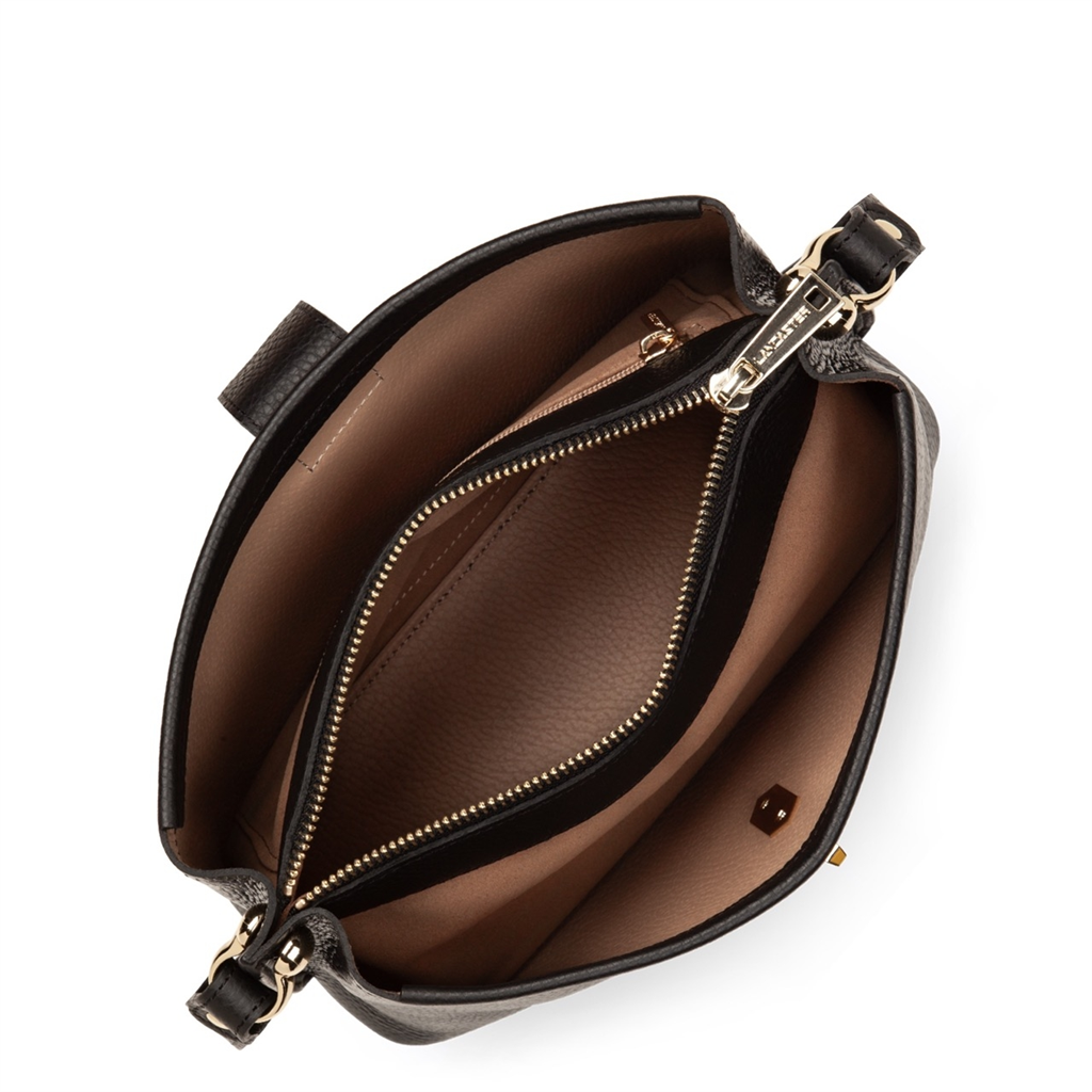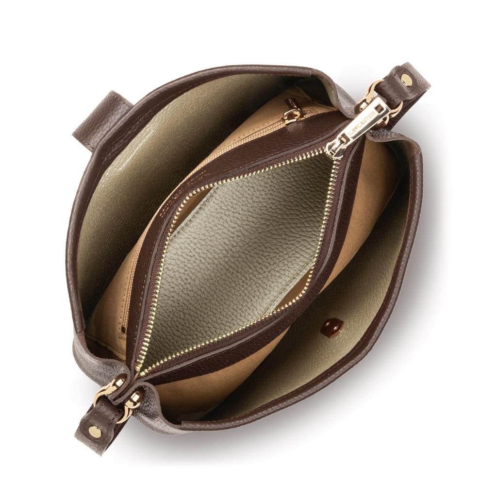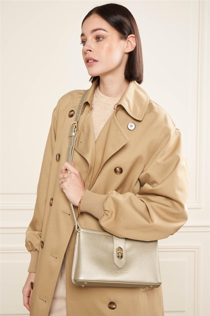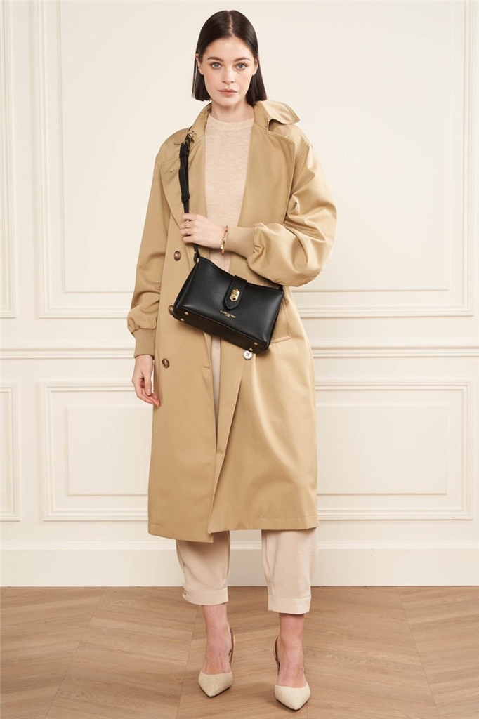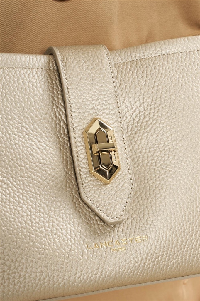 La collection Top Double, de la maison Lancaster, est une ligne fabriquée en France en cuir de vachette grainé. Présenté dans sa version Sac trotteur, il se porte à l’épaule ou travers. Doté d’un rabat avec fermoir, d’une bandoulière réglable et amovible, une poche centrale zippée, une poche avec une poche zippée et une poche à pression. – Matière : 100% Cuir de vachette, Doublure Vachette – Origine : France – Forme : Sac trotteur – Taille : TU – Porté : Épaule ou croisé – Fermeture : À fermoir – Anses : Non – Bandoulière : Ajustable – Dimensions : L 25 cm x l 9 cm x H 15 cm, Hauteur bandoulière (porté plus court) 90 cm, Hauteur bandoulière (porté plus long) 120 cm – Poids : 0,564 kg – Référence : 470-64 – Entretien : Nous conseillons d’imperméabilisé votre sac avant utilisation. Nettoyer régulièrement votre sac avec un chiffon doux pour enlever la poussière. Utilisez un chiffon pour la saletés et un lait nourrissant incolore pour cuir pour un nettoyage plus en profondeur. Évitez l’exposition à la lumière, à la chaleur, à l’eau et aux corps gras.