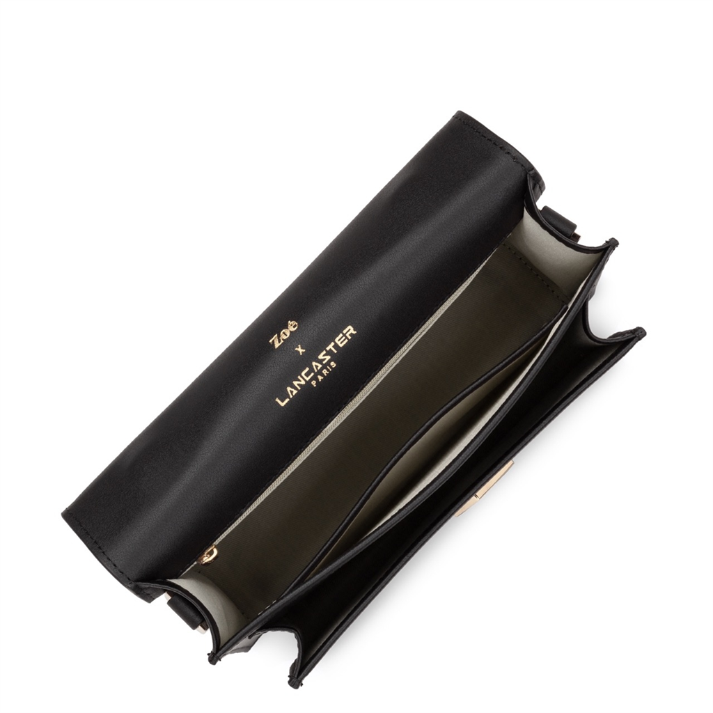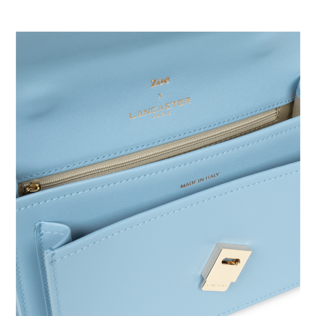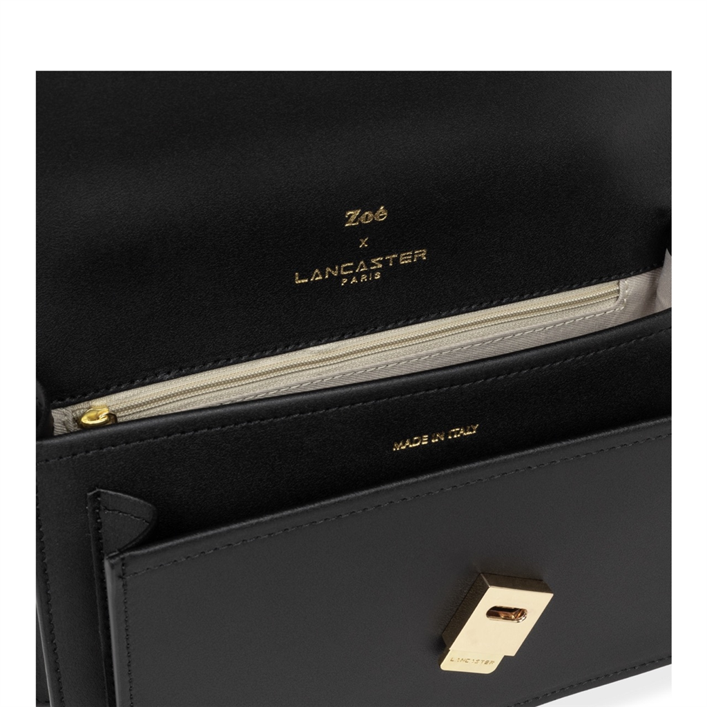 La maison Lancaster et la créatrice de contenu JusteZoé ont collaboré ensemble pour créer une collection qui mélange des touches sucrées et ambiance décalée. Présenté dans sa version Sac trotteur, il est fabriqué en Italie et confectionné en refente de cuir de vachette lisse. Doté d’un rabat graphique avec fermoir, d’une bandoulière amovible, d’une poche plaquée au dos, d’une poche sous le rabat et d’un compartiment principal avec une poche zippée. Ce modèle transportera vos essentiels de jour comme de nuit. – Matière : 100% Refente de cuir de vachette, Doublure Textile – Origine : Italie – Forme : Sac trotteur – Taille : TU – Porté : Main, épaule ou croisé – Fermeture : Rabat avec fermoir – Anse : Oui – Bandoulière : Amovible – Dimensions : L 22 cm x l 6 cm x H 15 cm, Hauteur bandoulière 100 cm – Poids : 0,410 kg – Référence : 480-010 – Entretien : Nous conseillons d’imperméabilisé votre sac avant utilisation. Nettoyer régulièrement votre sac avec un chiffon doux pour enlever la poussière. Utilisez un chiffon pour la saletés et un lait nourrissant incolore pour cuir pour un nettoyage plus en profondeur. Évitez l’exposition à la lumière, à la chaleur, à l’eau et aux corps gras.