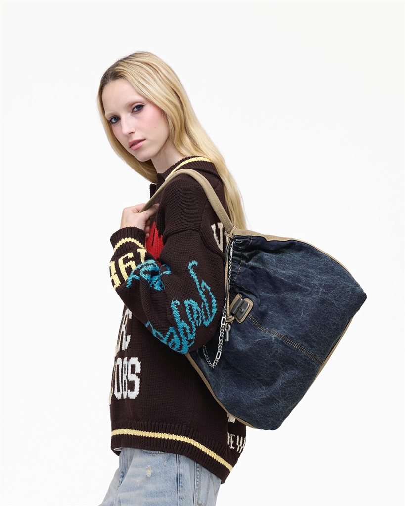 The Cristina Tote est un modèle inspiré des archives “Marc by Marc”, à l’allure décontractée et douce. Présenté dans sa version denim délavée et aux finitions en daim italien, ce cabas réinvente le style classique avec des éléments métalliques. Rehaussé d’une chaîne J Marc et d’un charm clé d’archives, clin d’oeil à sa ligne et à sa réinterprétation moderne. À la fois léger et suffisamment spacieux, il peut contenir un ordinateur portable jusqu’à 13 pouces. Il est conçu pour vous accompagner tout au long de la journée en toute sérénité. – Matière : 100% Denim et 100% Daim, Doublure en sergé – Forme : Cabas – Taille : TU – Porté : Main ou épaule – Fermeture : Zippée – Anses : Oui – Bandoulière : Non – Dimensions : L 43 cm x l 15 cm x H 28 cm, Hauteur anses 28 cm – Référence : 2S6HTT004H02