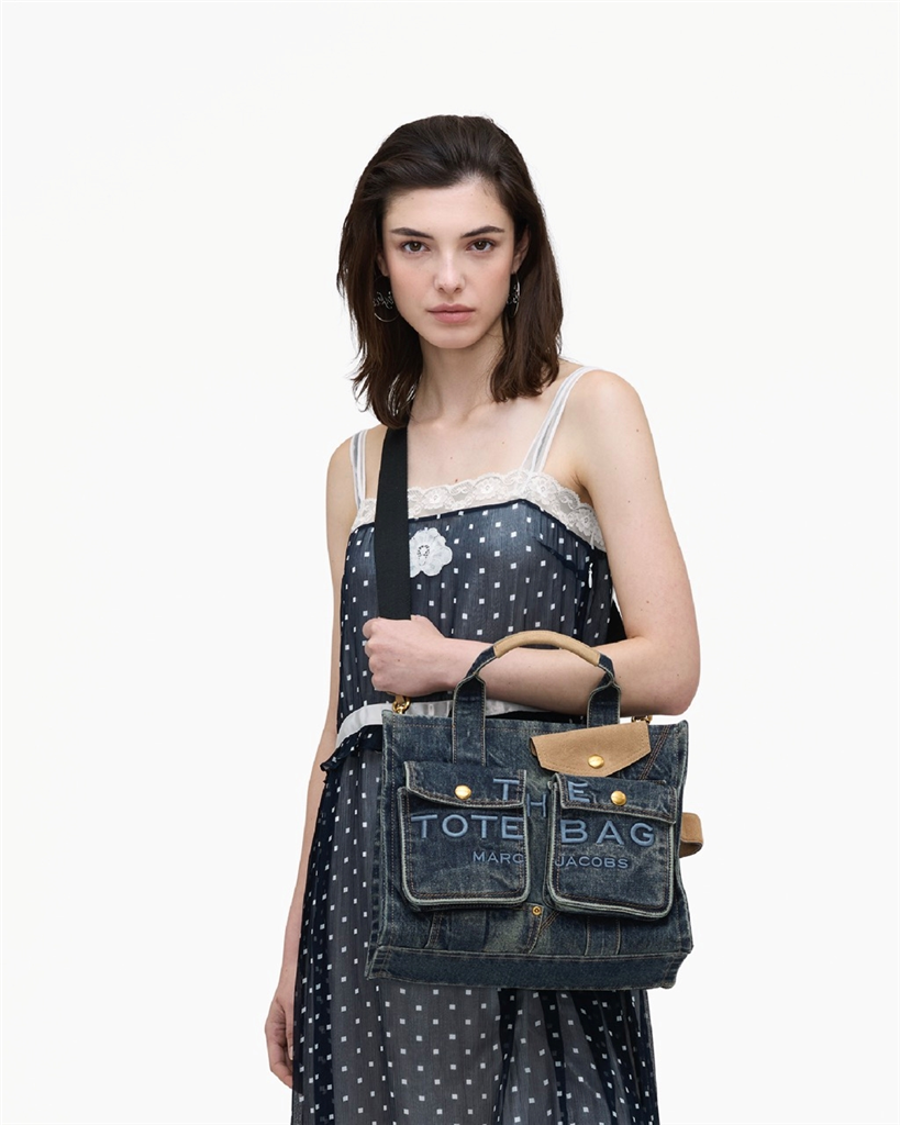 the denim suede medium cargo tote bag