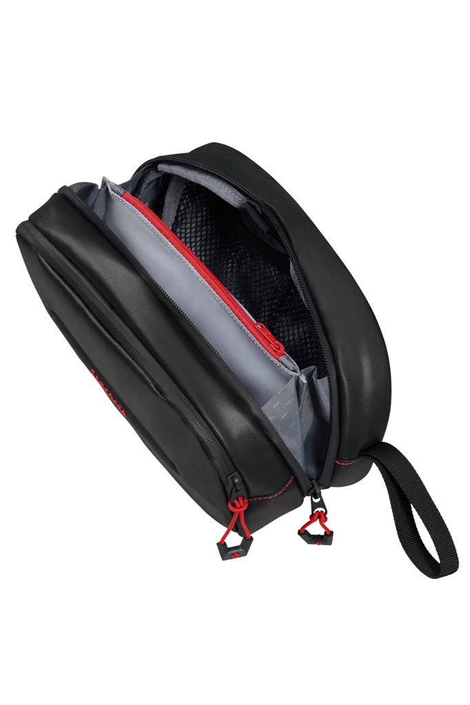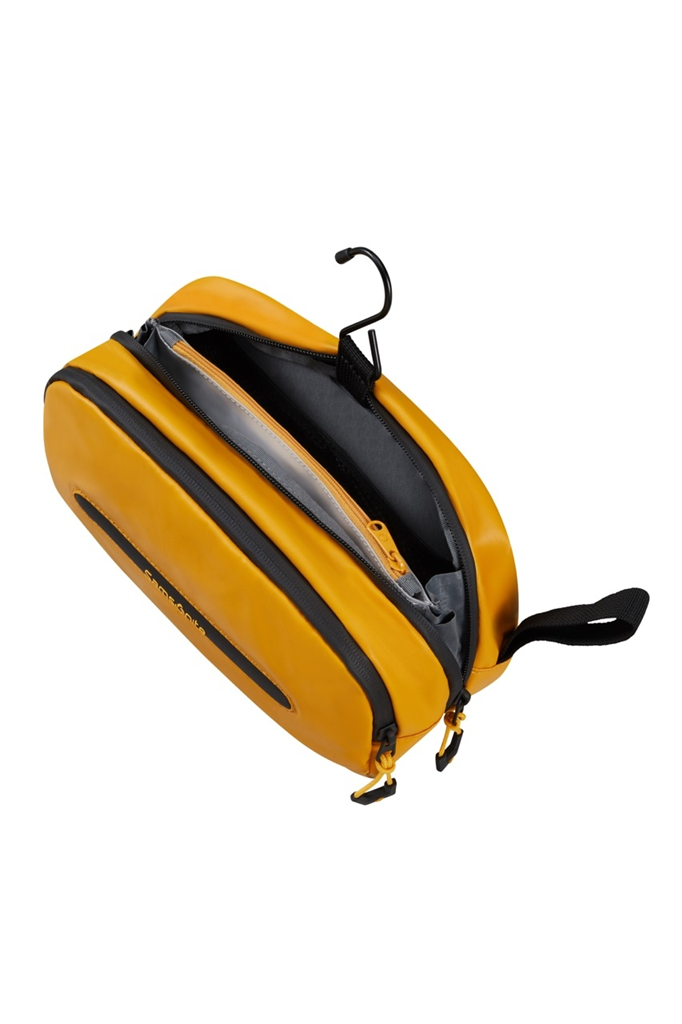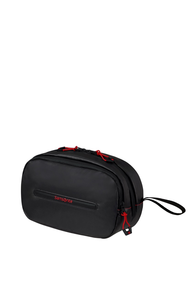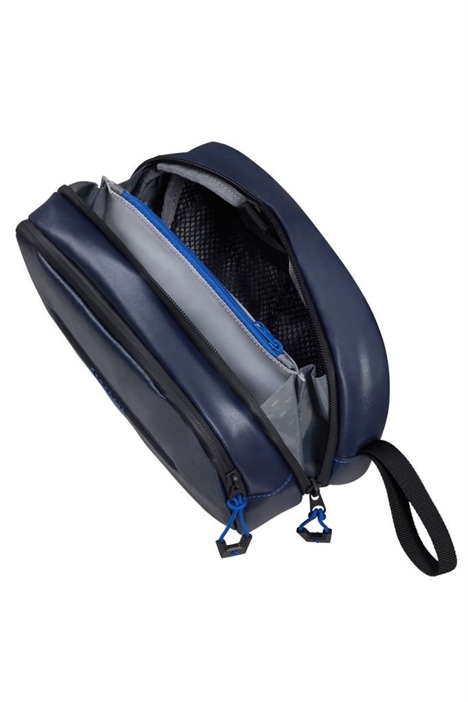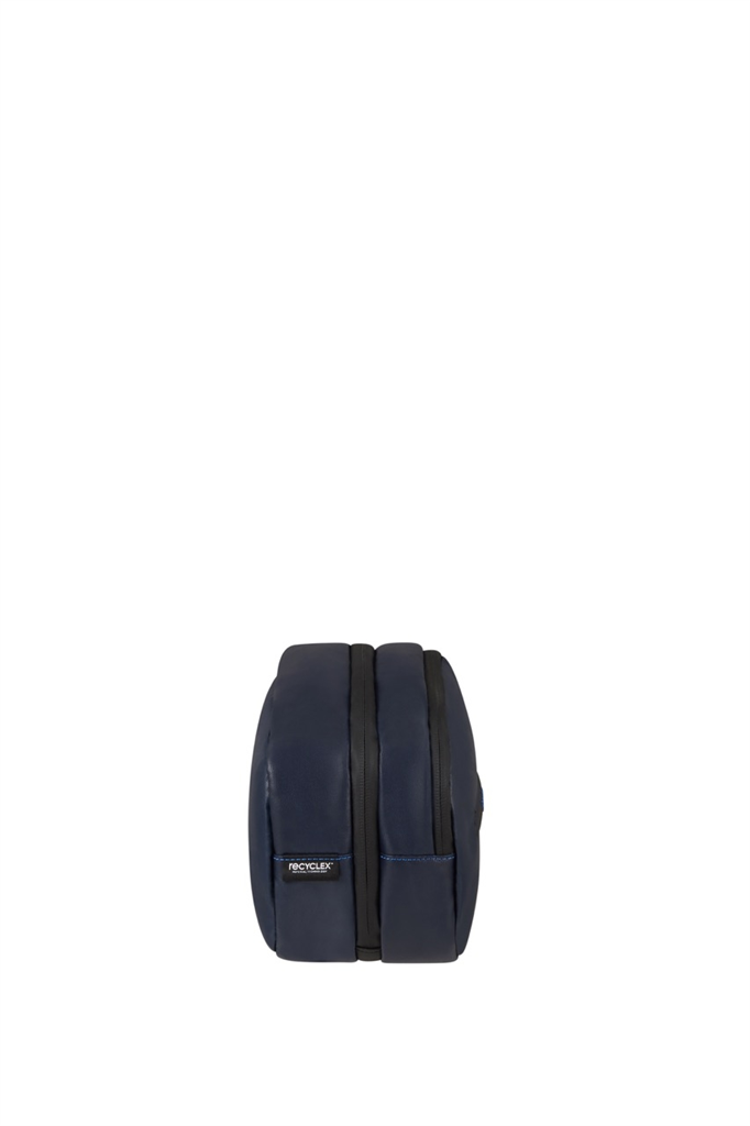 La ligne Ecodiver allie fonctionnalité et design élégant en utilisant des matériaux recyclés. Présenté dans sa version Trousse de toilette en Nylon et Polyester recyclé, celle-ci est durable et classique. La pochette imperméable est parfaite pour ranger vos liquides. – Matière : 100% Nylon et Polyester recyclé – Modèle : Trousse de toilette toile – Taille : TU – Capacité : 4,5L – Poids : 0,2kg – Dimensions : H 16 cm x L 26 cm x l 13 cm – Référence : 140878 – Garantie : Garantie légale Extérieur – Tissu : Souple – Fermeture : Fermetures à glissière – Poignées : Poignée latérale – Poche extérieure : 1 poche – Détails réfléchissants : Oui – Matériau imperméable : Oui Intérieur – Compartiment principal avec une poche zippée pour liquides, un passant élastiques et un cintre pour suspendre la trouse Durabilité Le tissu extérieur est constitué à 100% du poids en nylon recyclé post industriel et de plastique PET recyclé post-consommation. Environ 90% de la doublure intérieure et de la fermeture éclair sont fabriqués à partir de plastique PET recyclé post consommation. L’utilisation de plastique PET recyclé après consommation permet d’éviter la destruction de l’équivalent de 5 bouteilles d’eau en plastique (0,5L – 20g).