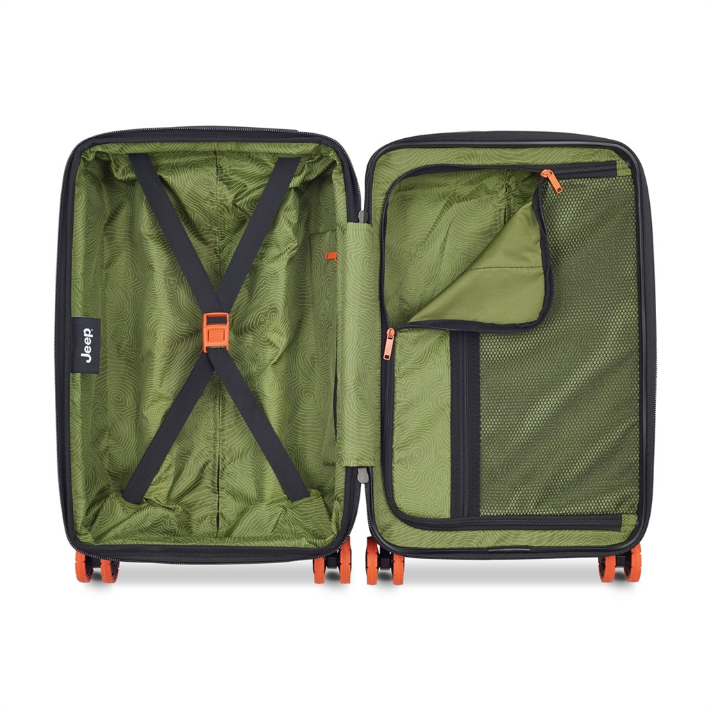 Delsey signe une partenariat avec Jeep et réalise une collection de bagages inspirés des modèles emblématique de la marque automobile. Présentée dans sa version Valise Cabine extensible, elle est idéal pour emmener vos essentiels durant un week-end. Cette collection haut de gamme allie design et fonctionnalité. – Matière : 70% ABS et 30% Polycarbonate – Origine : Non communiqué – Modèle : Valise rigide à 4 roues – Taille : Cabine – Serrure TSA : Oui – Capacité : 35/39L – Poids : 3kg – Poids moyen : Environ 10kg – Dimensions : H 55 cm x L 35 cm x l 23 cm Avec extension H 55 cm x L 35 cm x l 25 cm – Référence : J0274280 – Garantie : Garantie mondiale limitée de 5 ans Extérieur – Fermeture : Fermeture à glissière – Poignées : 1 poignée haute, 1 poignée latérale et 1 poignée de traction (Double tube) – Type de roues : Double roulettes – Extensible : Oui Intérieur – Compartiment inférieur avec sangles croisés et poche zippée – Compartiment supérieur avec plateau séparateur et une poche zippée Tailles recommandées par compagnies aérienne Ce bagage cabine est 55 x 35 x 23/25 cm cm et peut-être amené à bord 50 différentes compagnies.